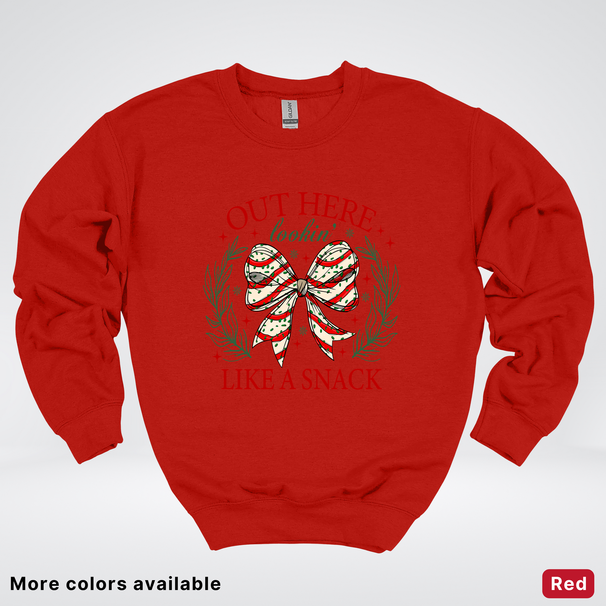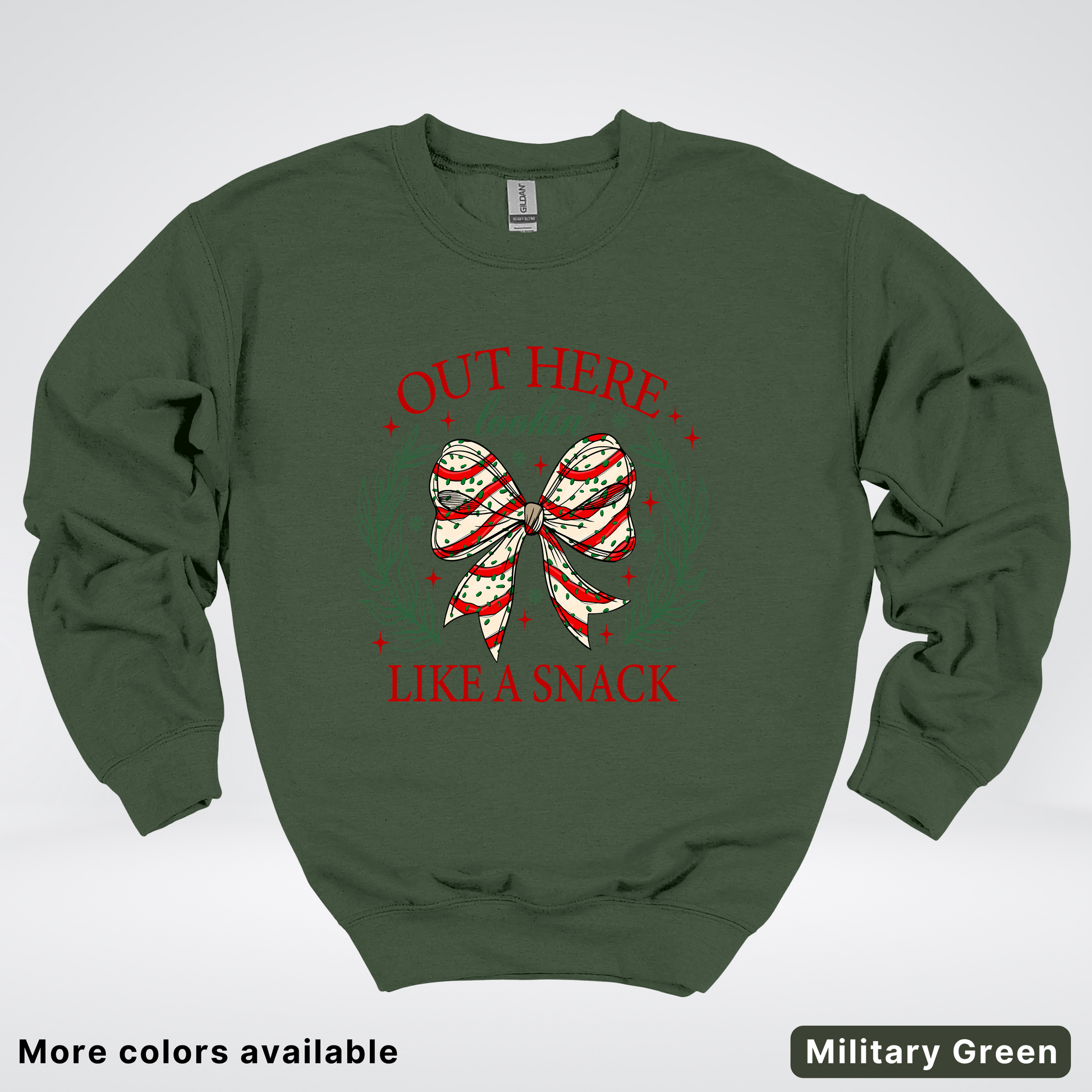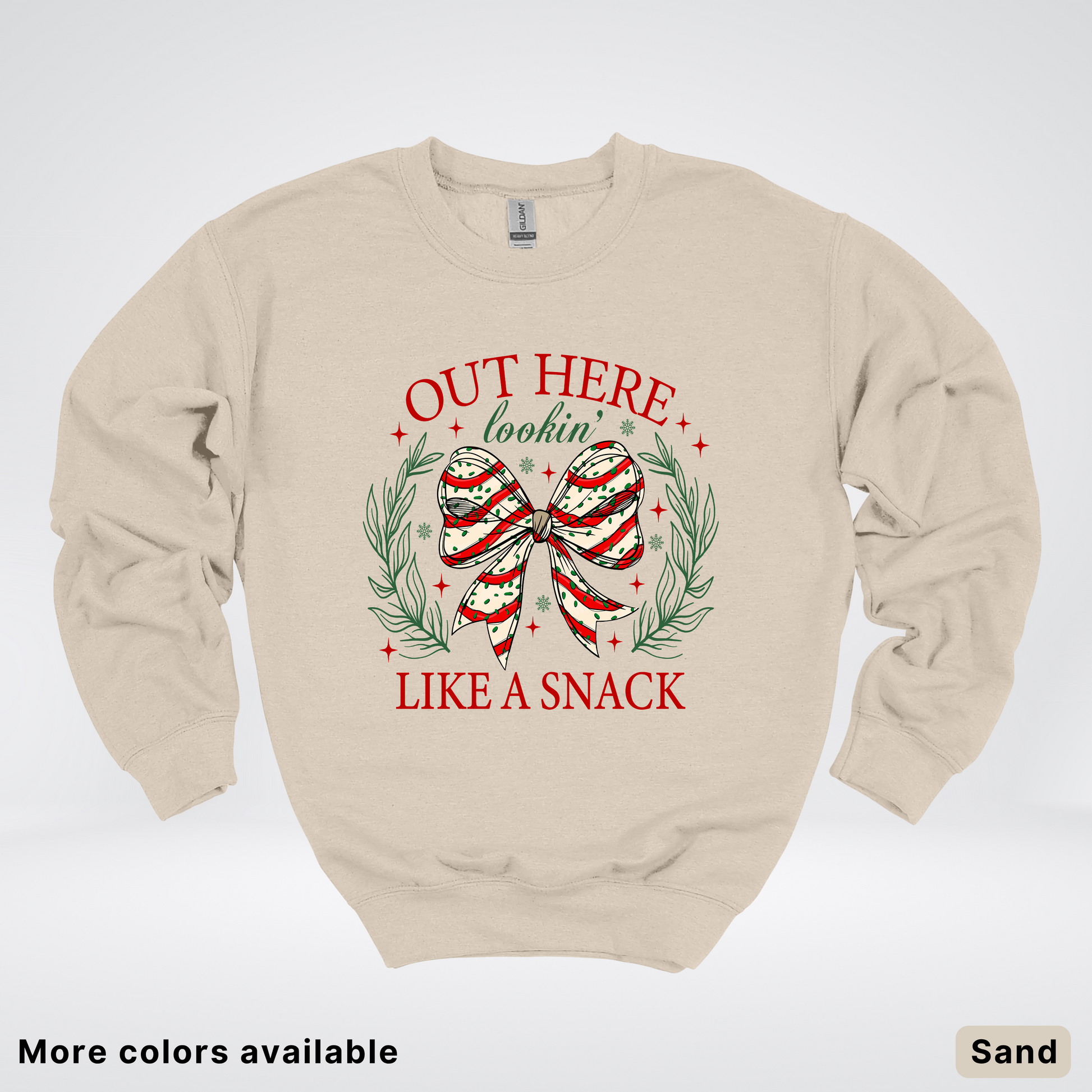 Out Here Looking Like A Snack – Sweatshirt Turn heads and own your confidence in this playful sweatshirt that celebrates self-assured style. Perfect for anyone ready to make a statement, this cozy layer combines comfort with attitude. Whether you're running errands or hanging with friends, rock this tee and let your personality shine. Soft, durable, and unapologetically fun—because looking good shouldn't be complicated.