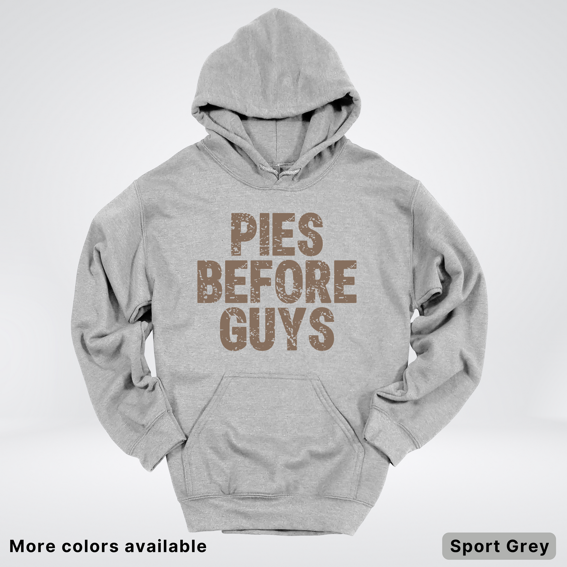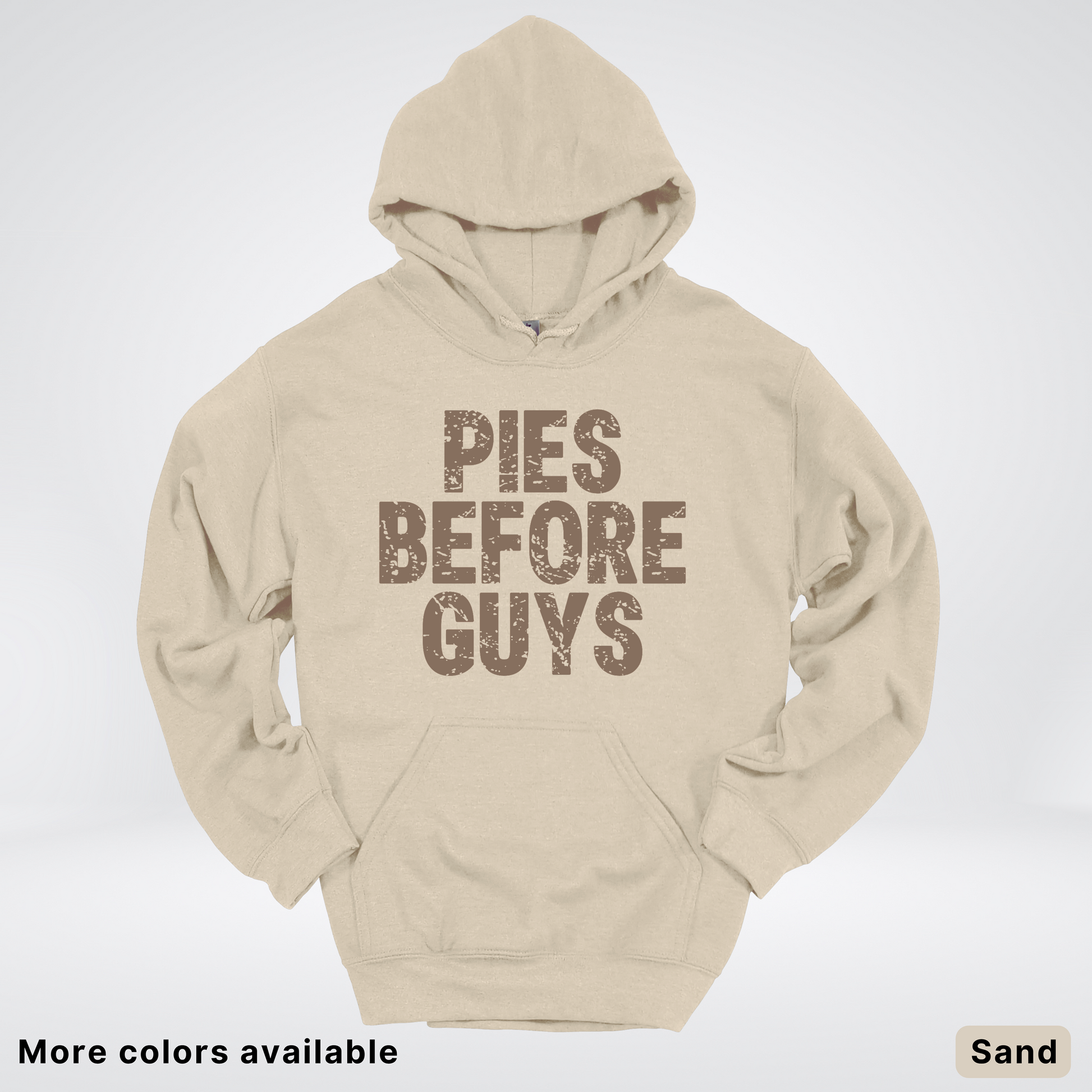 Forget the dating scene—this cozy hoodie celebrates what really matters: delicious pie! Perfect for dessert lovers and comfort enthusiasts, it features a witty "Pies Before Guys" message that'll get laughs from fellow food fans. Soft, warm, and unapologetically fun, it's the ideal layer for casual hangouts, lazy weekends, or anyone who'd rather spend time with their favorite baked goods. Make a sweet statement while staying snug and stylish.