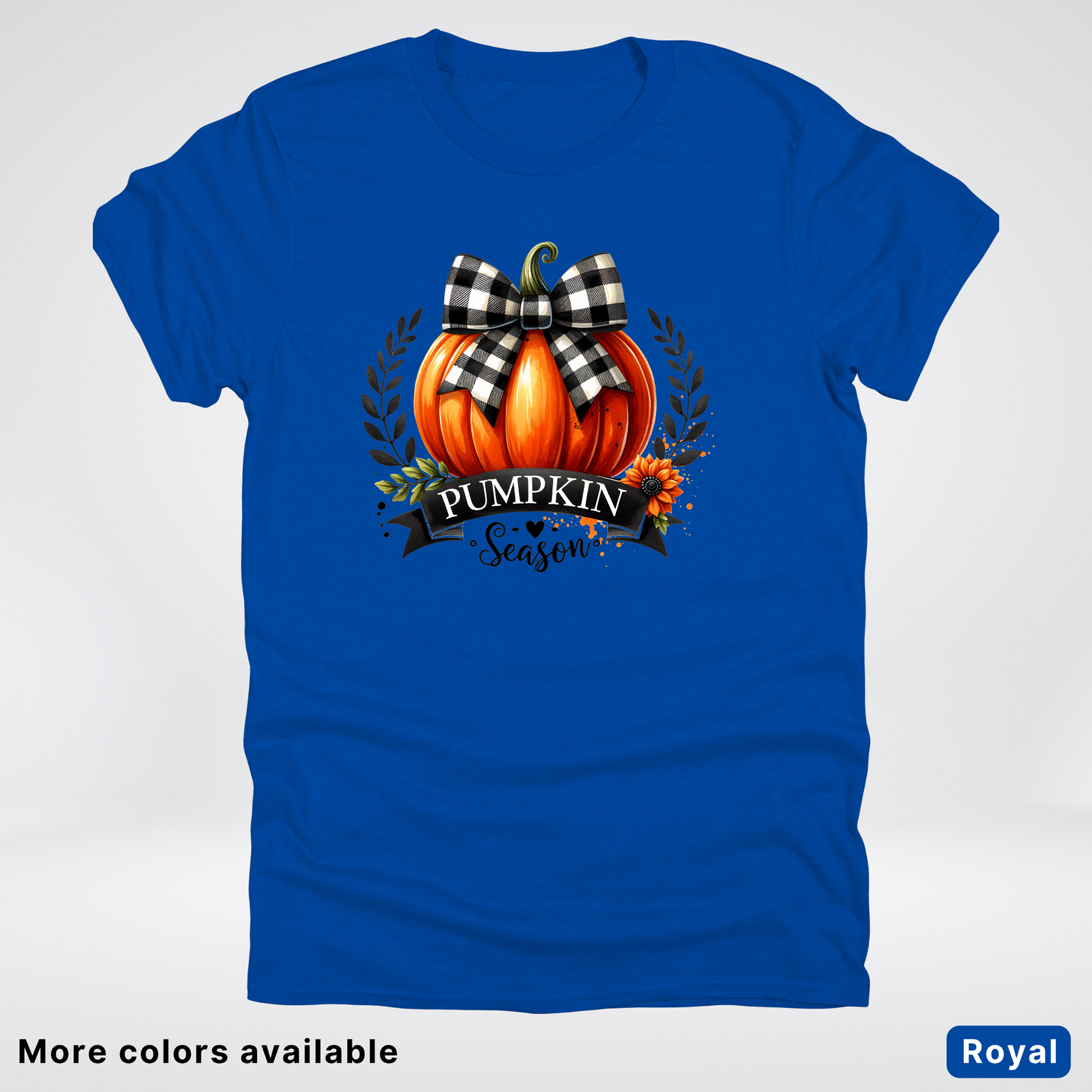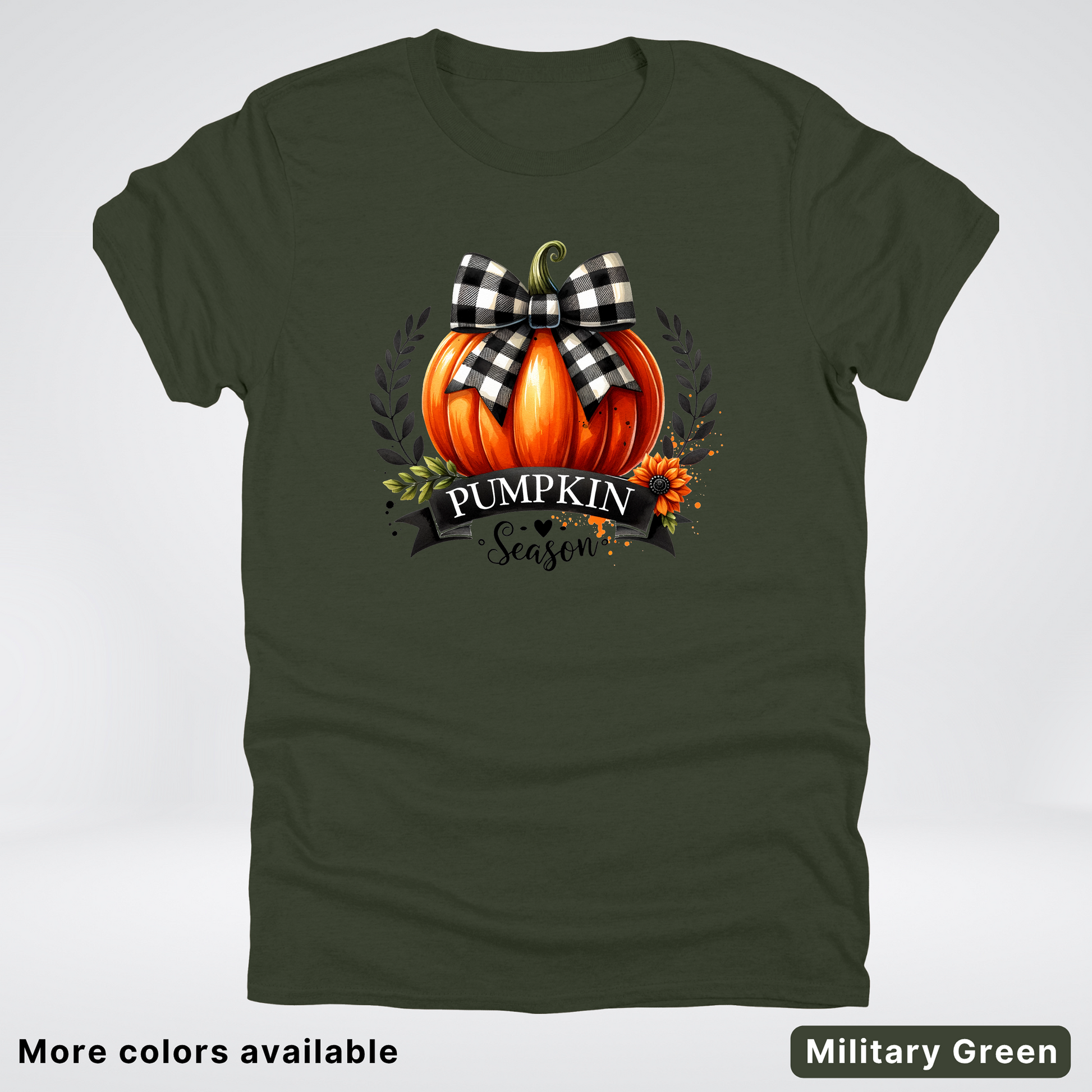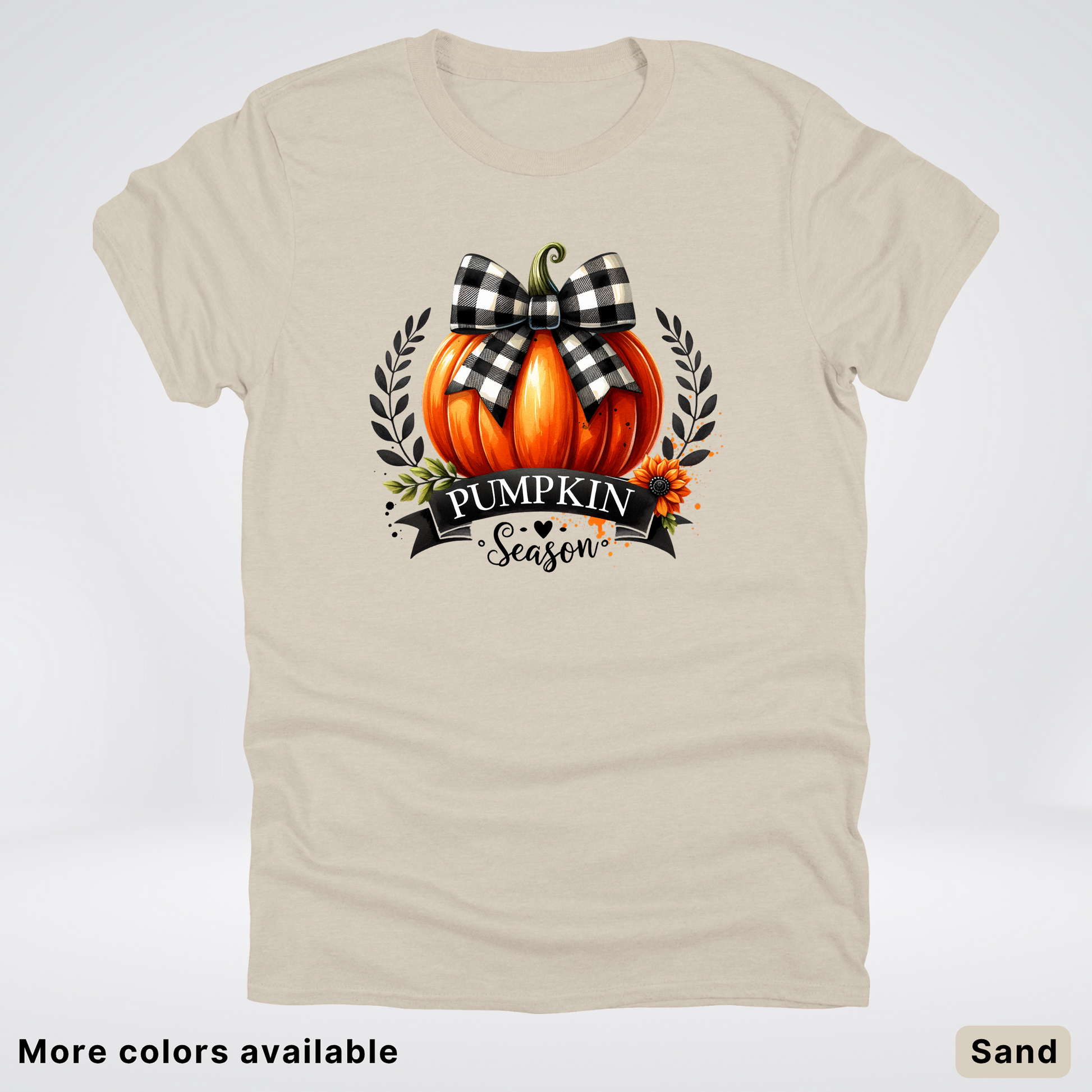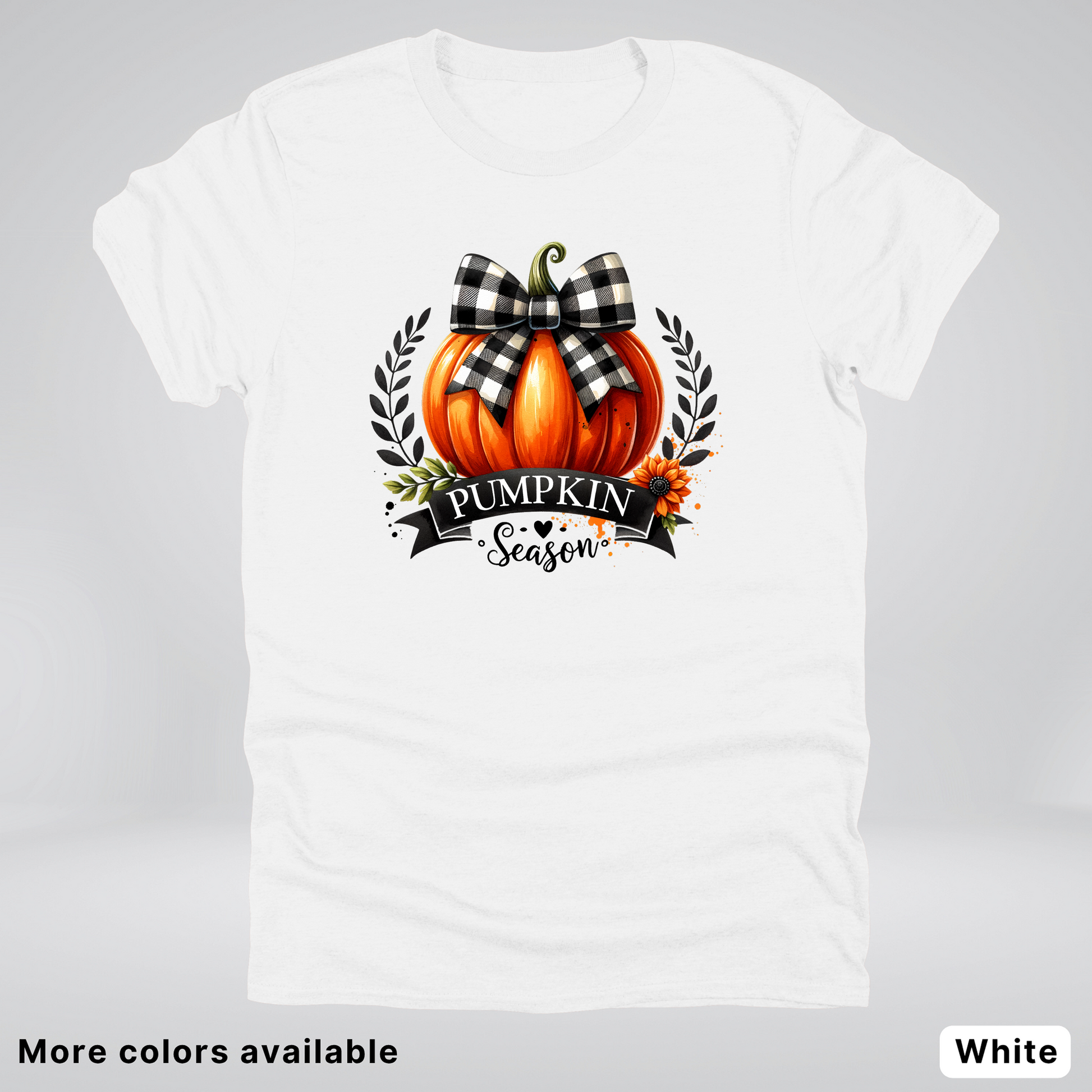 Pumpkin Season Black Plaid Bow - T-Shirt