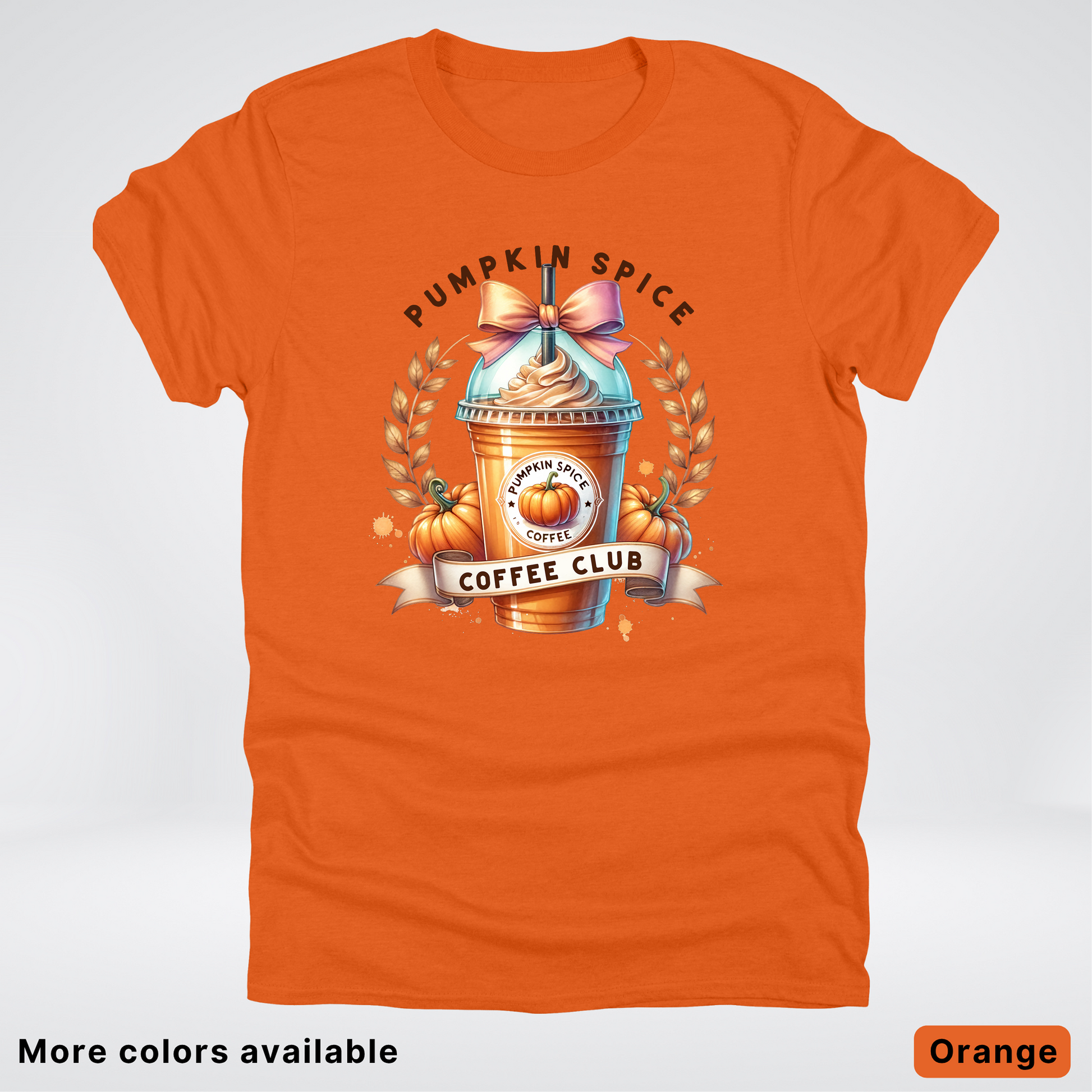 Join the Pumpkin Spice Coffee Club in this cozy tee that celebrates fall's favorite flavor combo. Perfect for coffee lovers and seasonal enthusiasts who live for that first sip of pumpkin spice goodness. Soft, comfortable, and ready to show off your devotion to the most anticipated flavor of the year. Whether you're hitting the coffee shop or lounging at home, this shirt says it all—pumpkin spice season is the best season.
