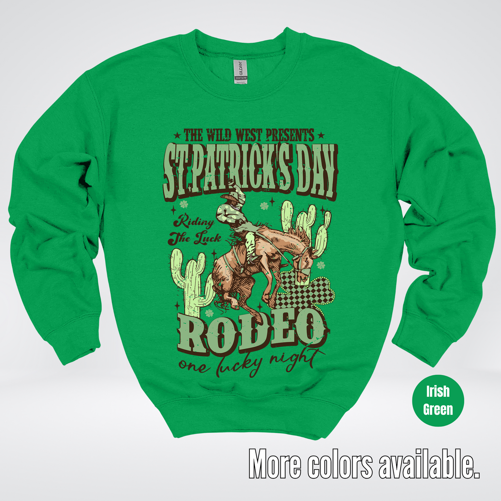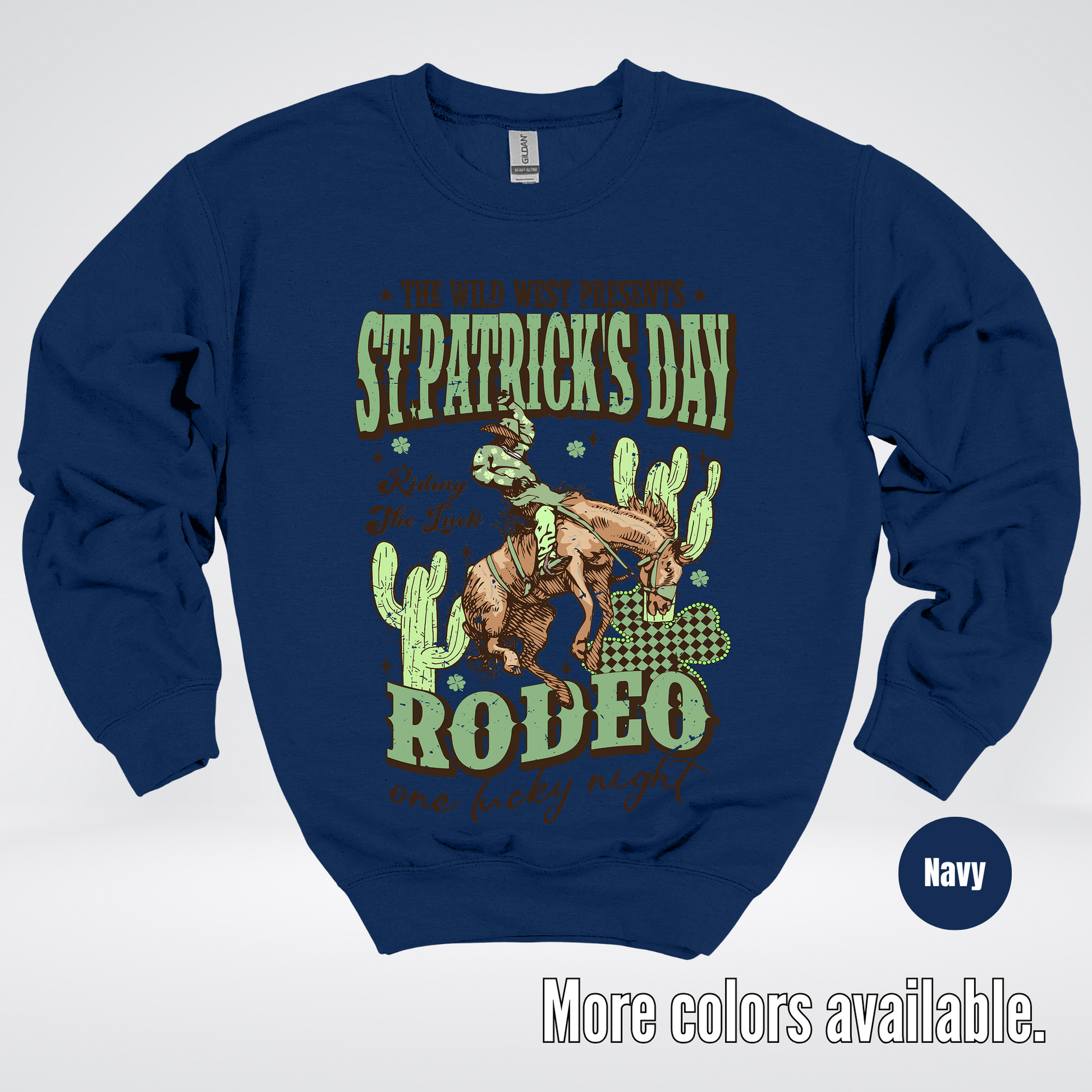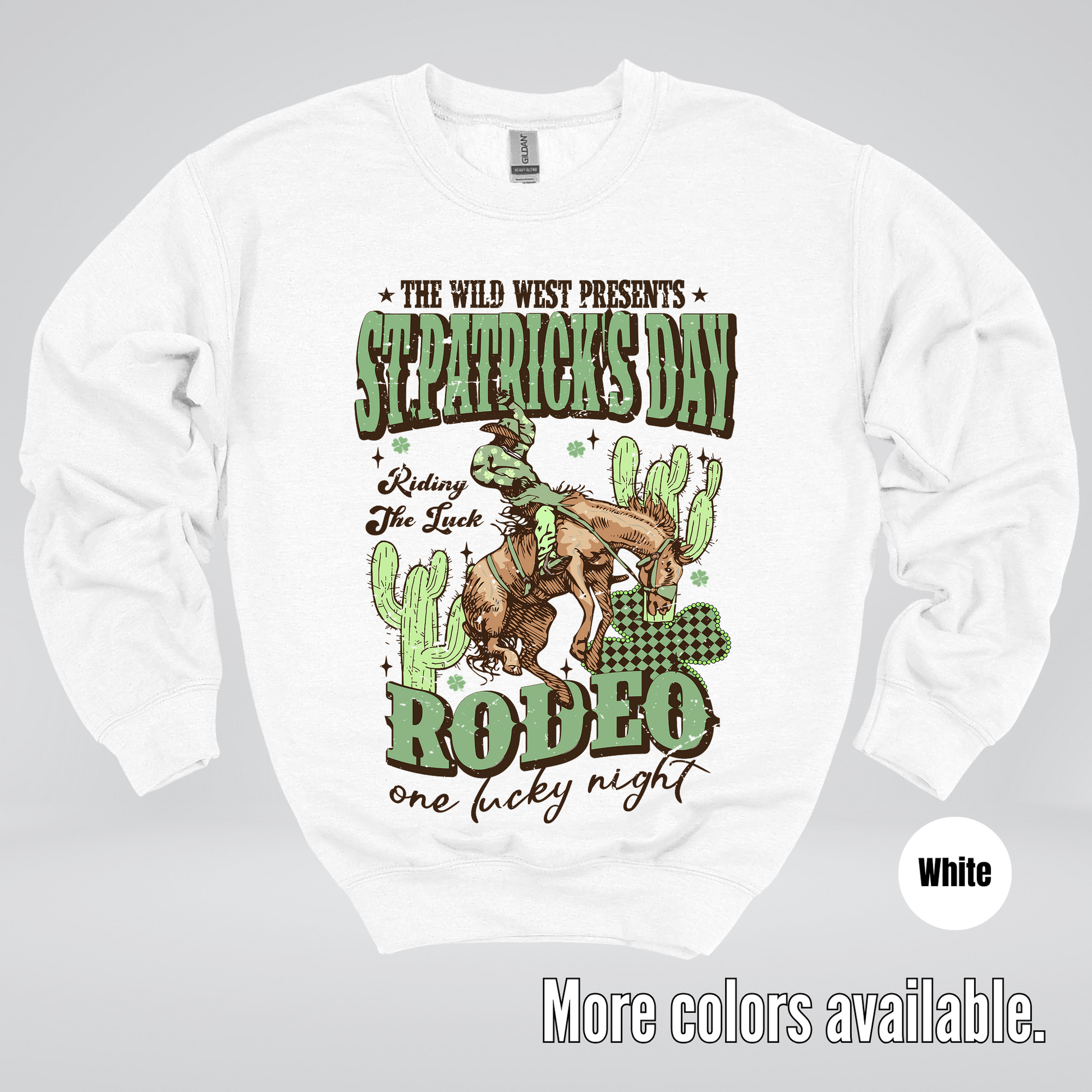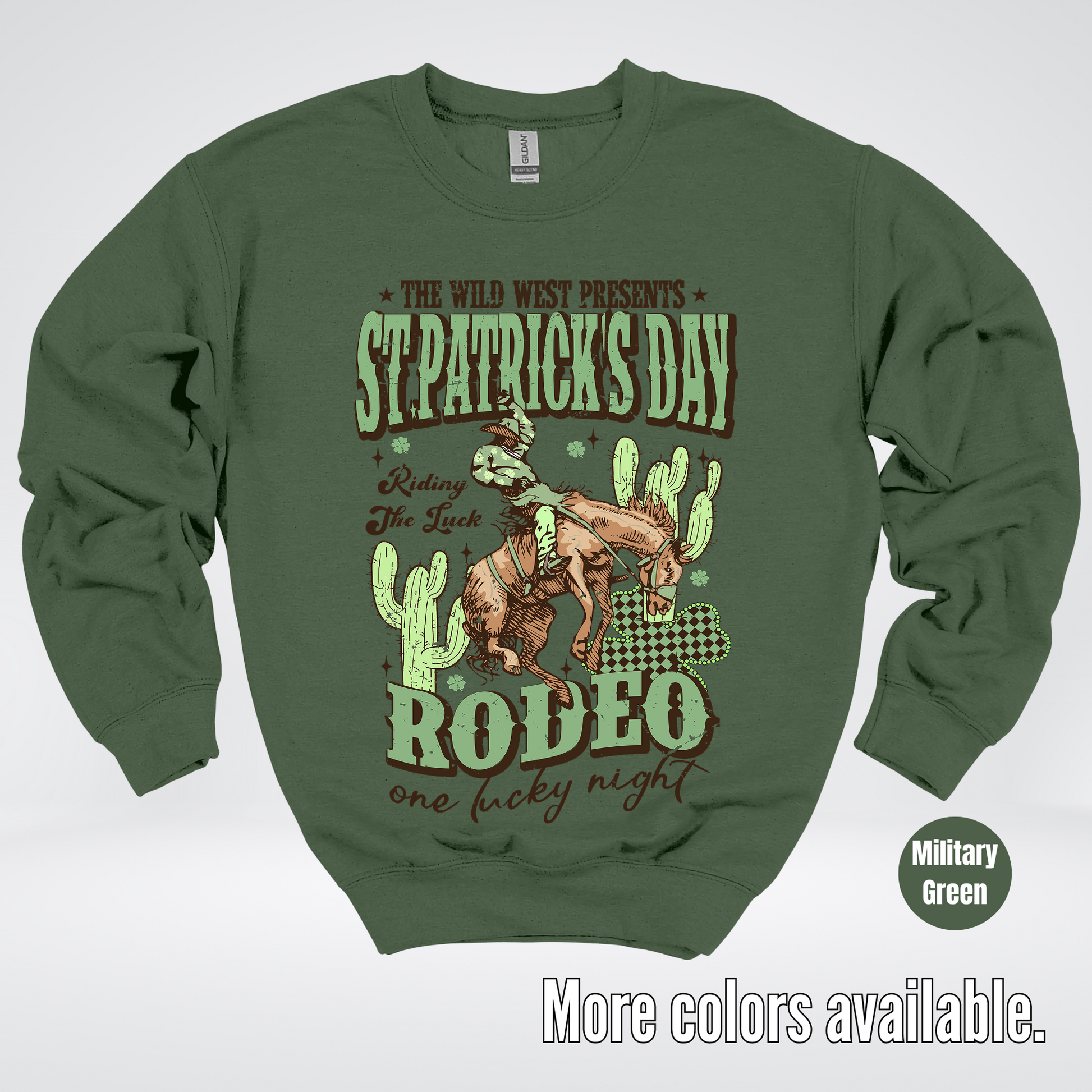 Saint Patrick’s Day Rodeo One Lucky Night Distressed Crewneck Sweatshirt