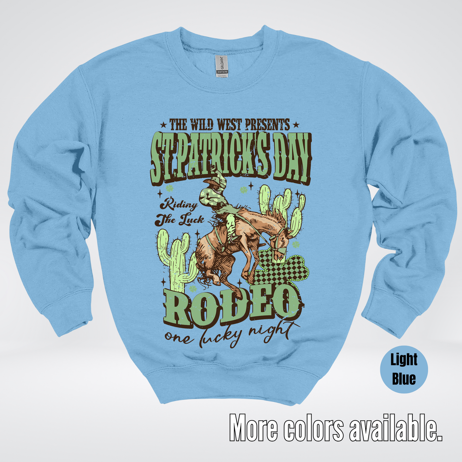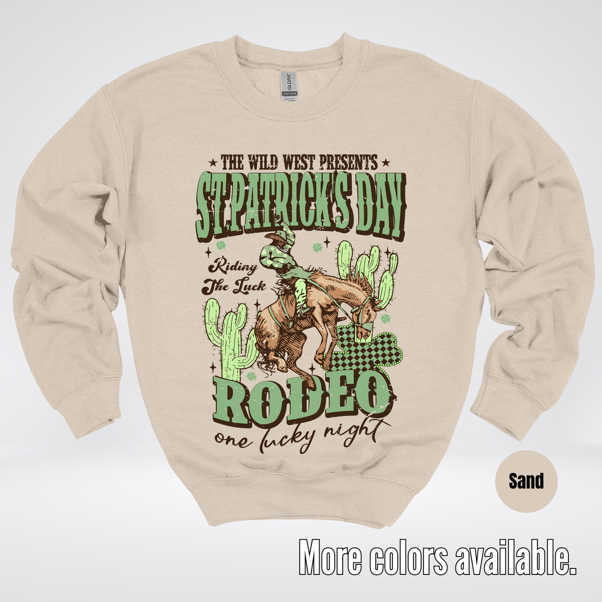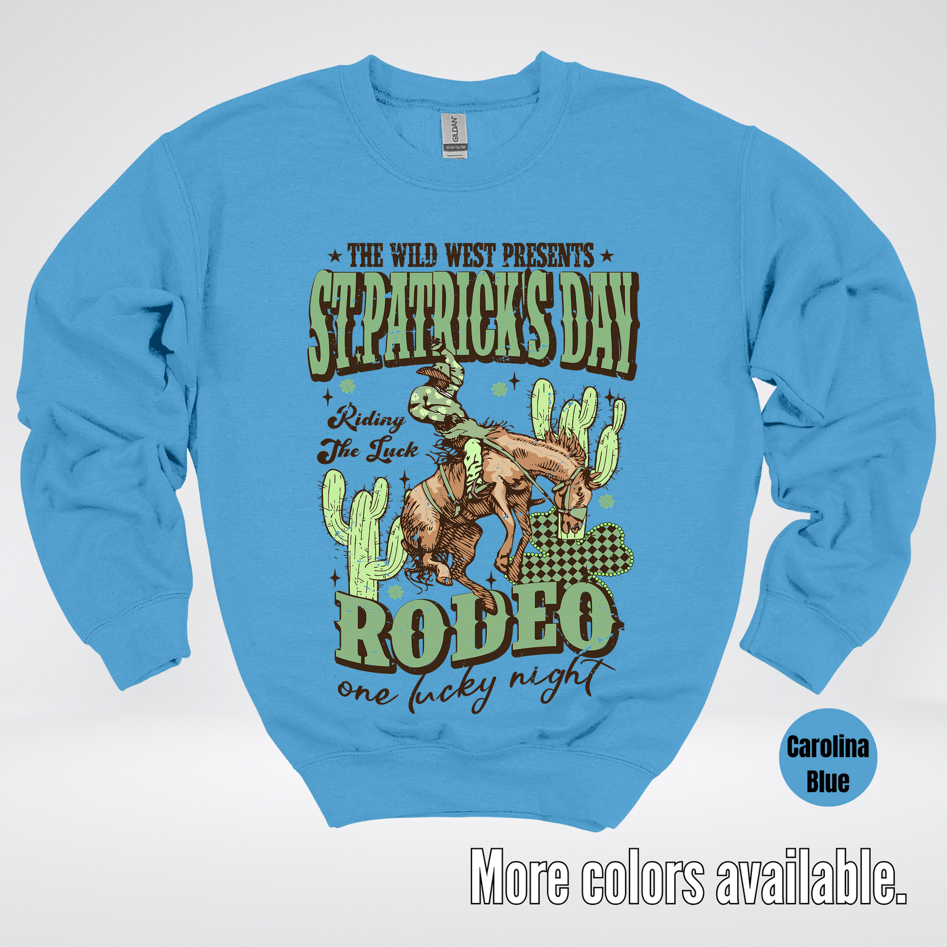 Saint Patrick’s Day Rodeo One Lucky Night Distressed Crewneck Sweatshirt