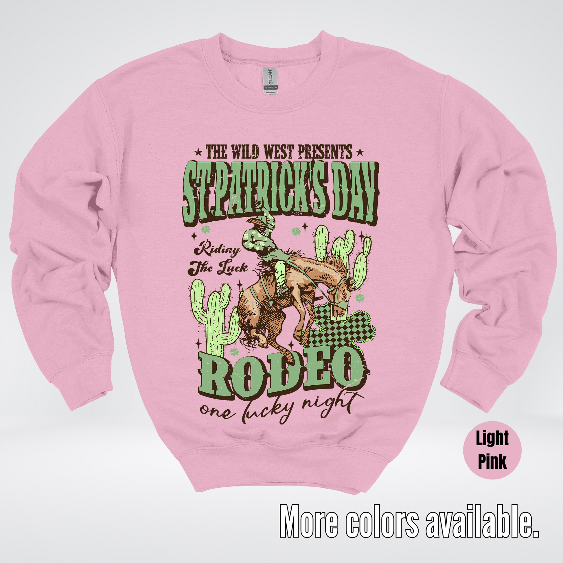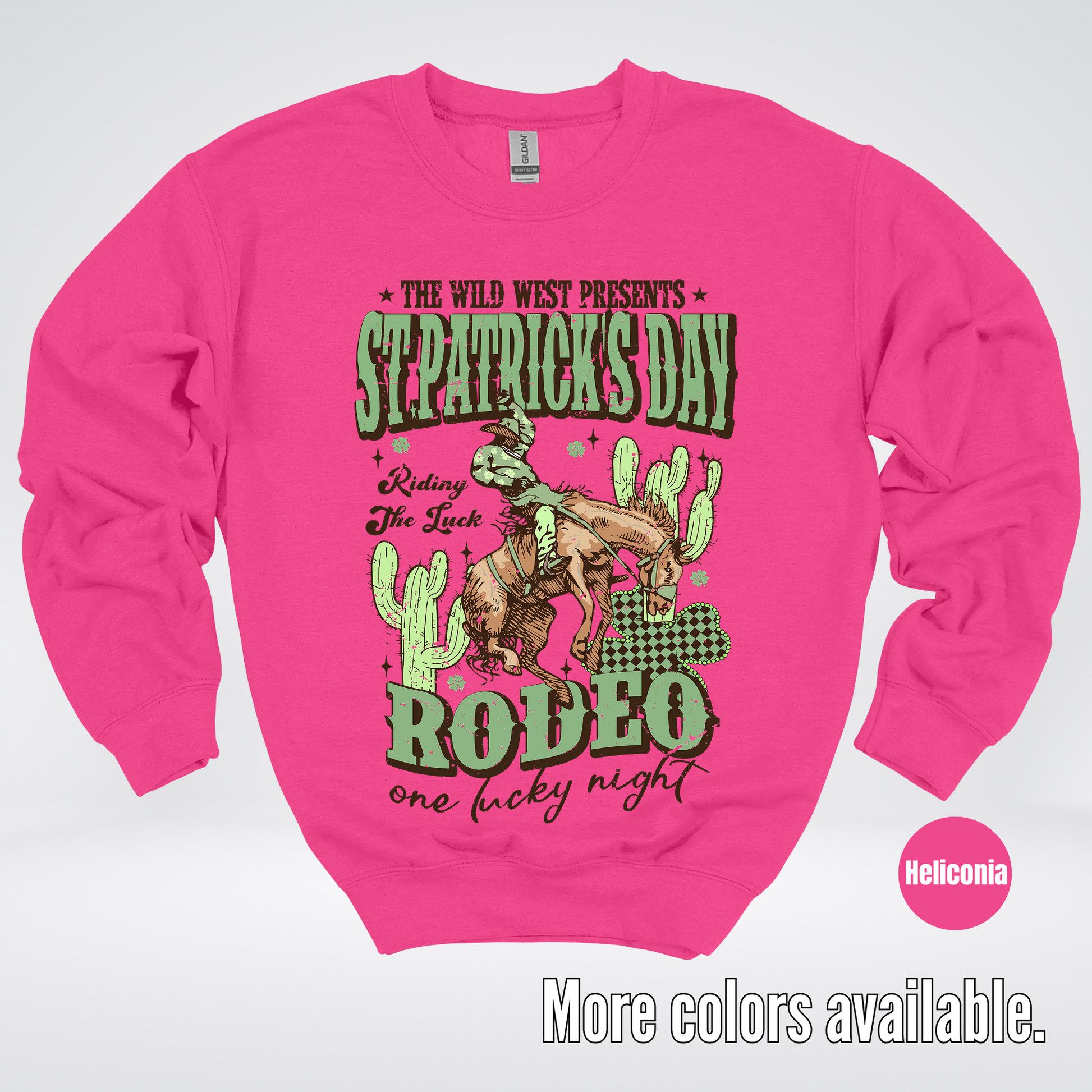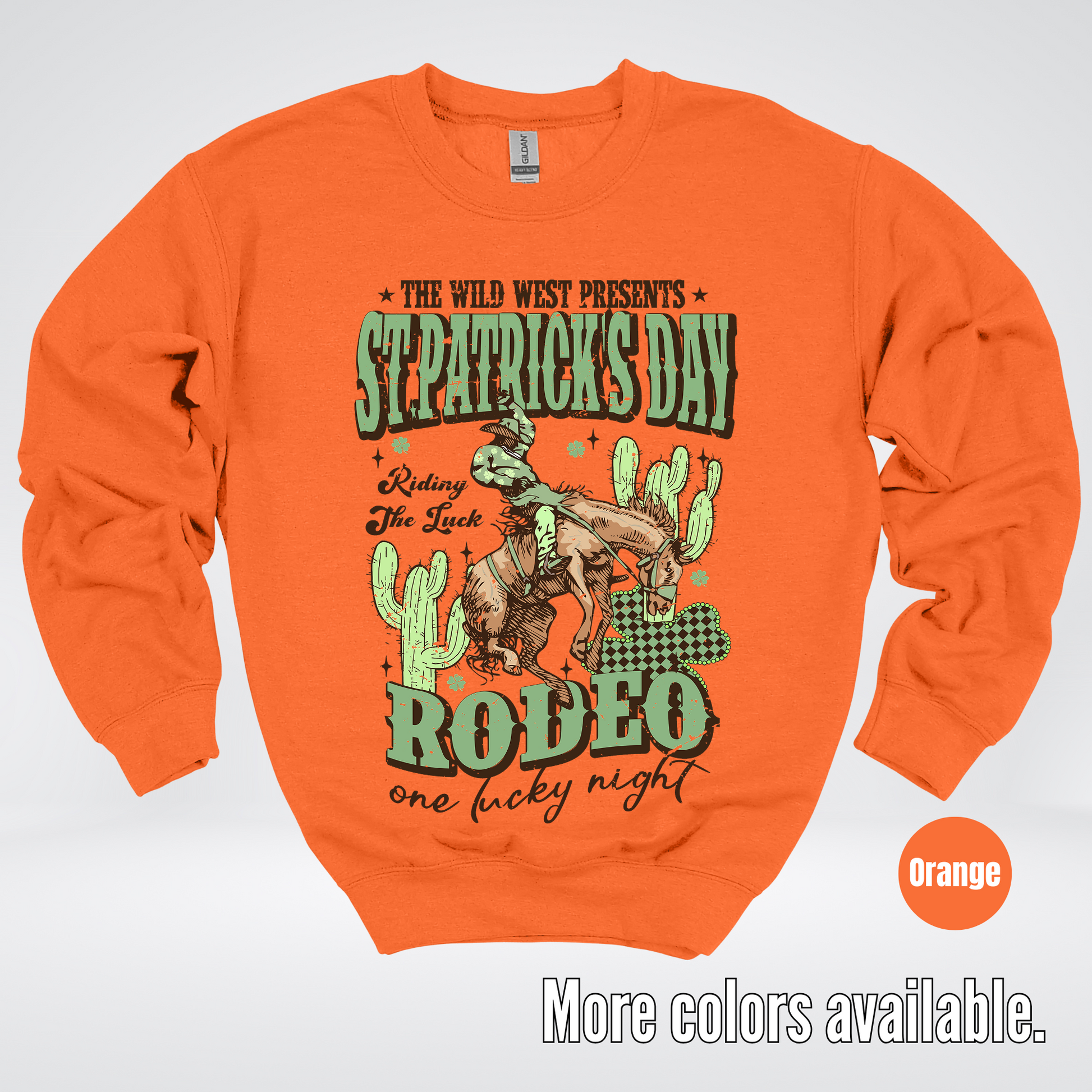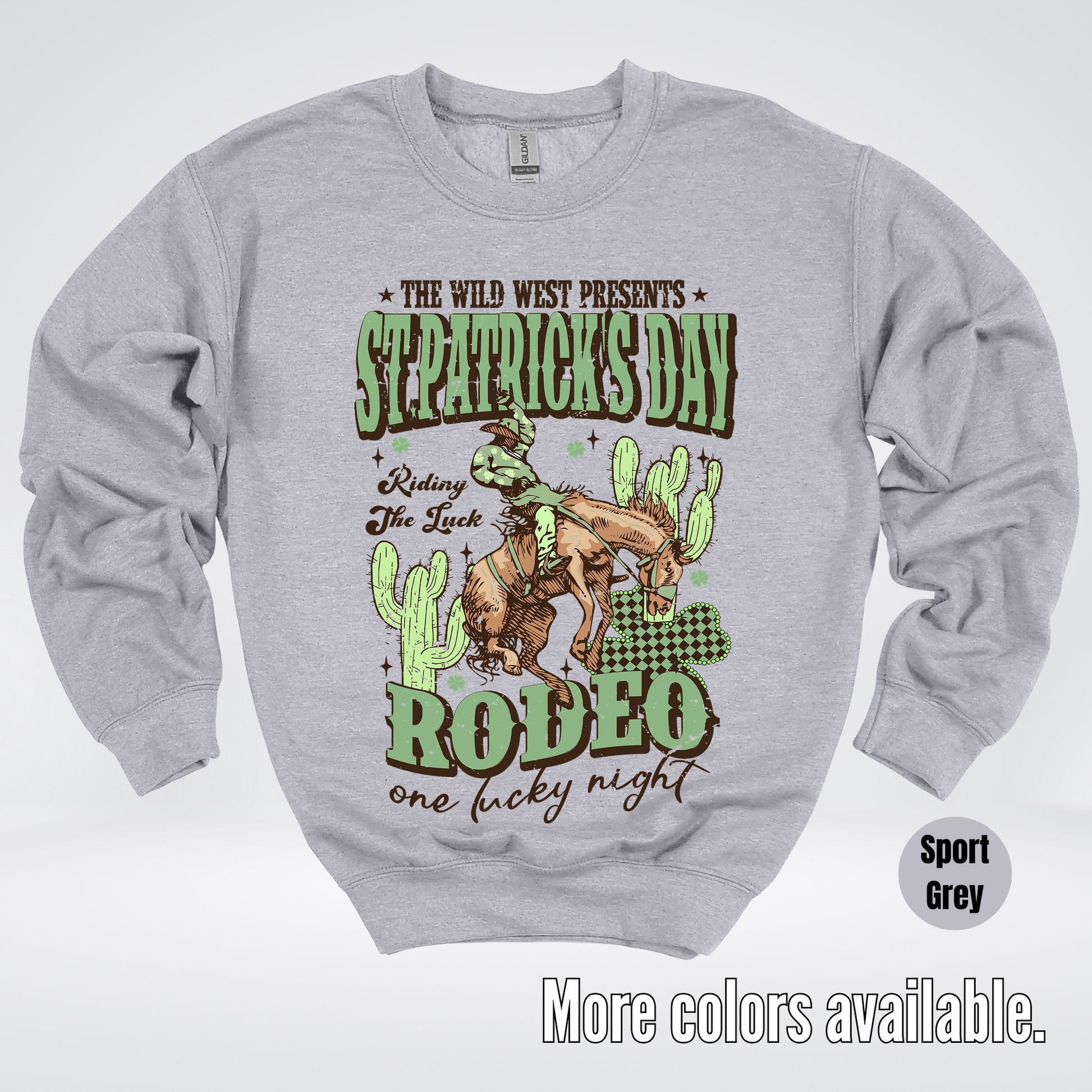 Saint Patrick’s Day Rodeo One Lucky Night Distressed Crewneck Sweatshirt