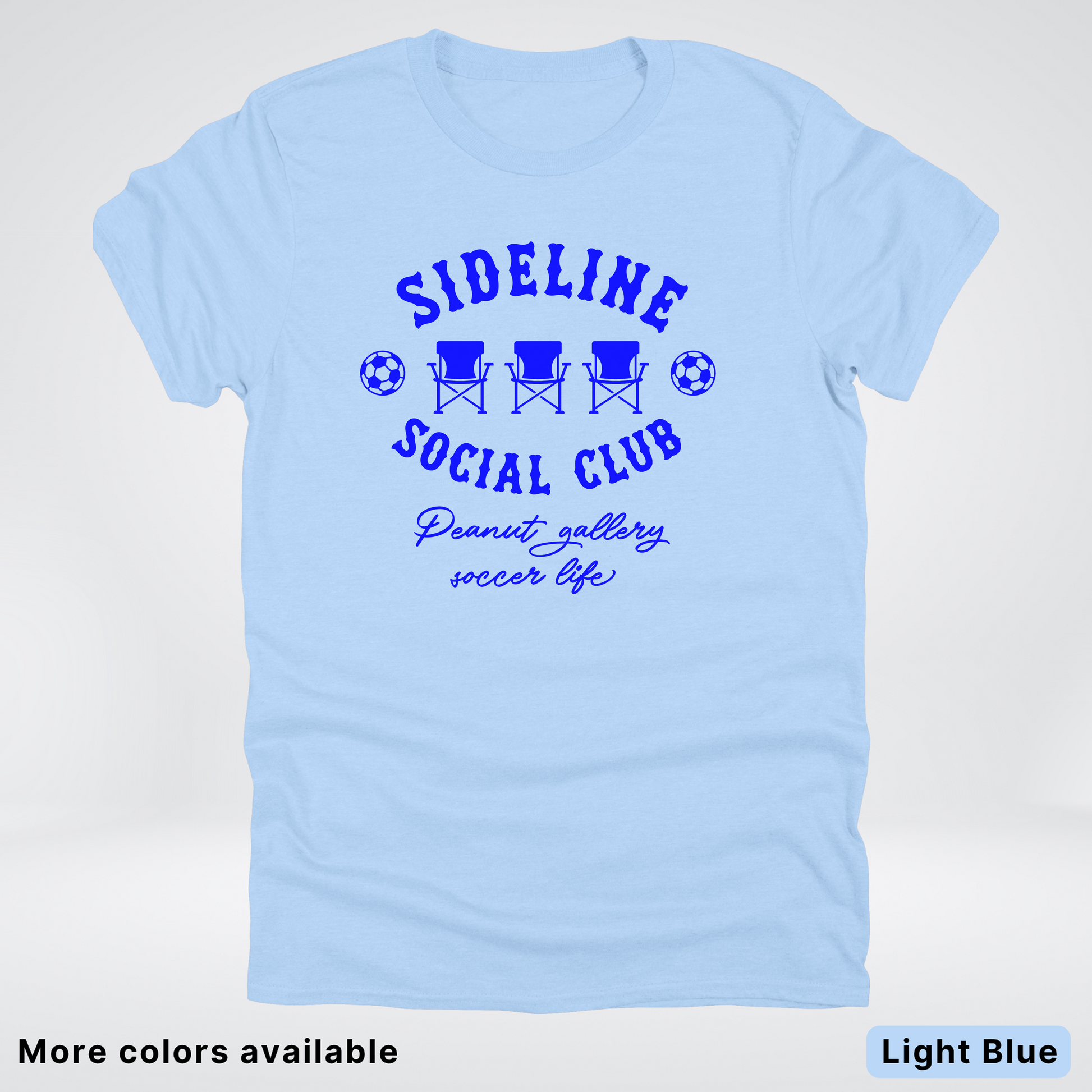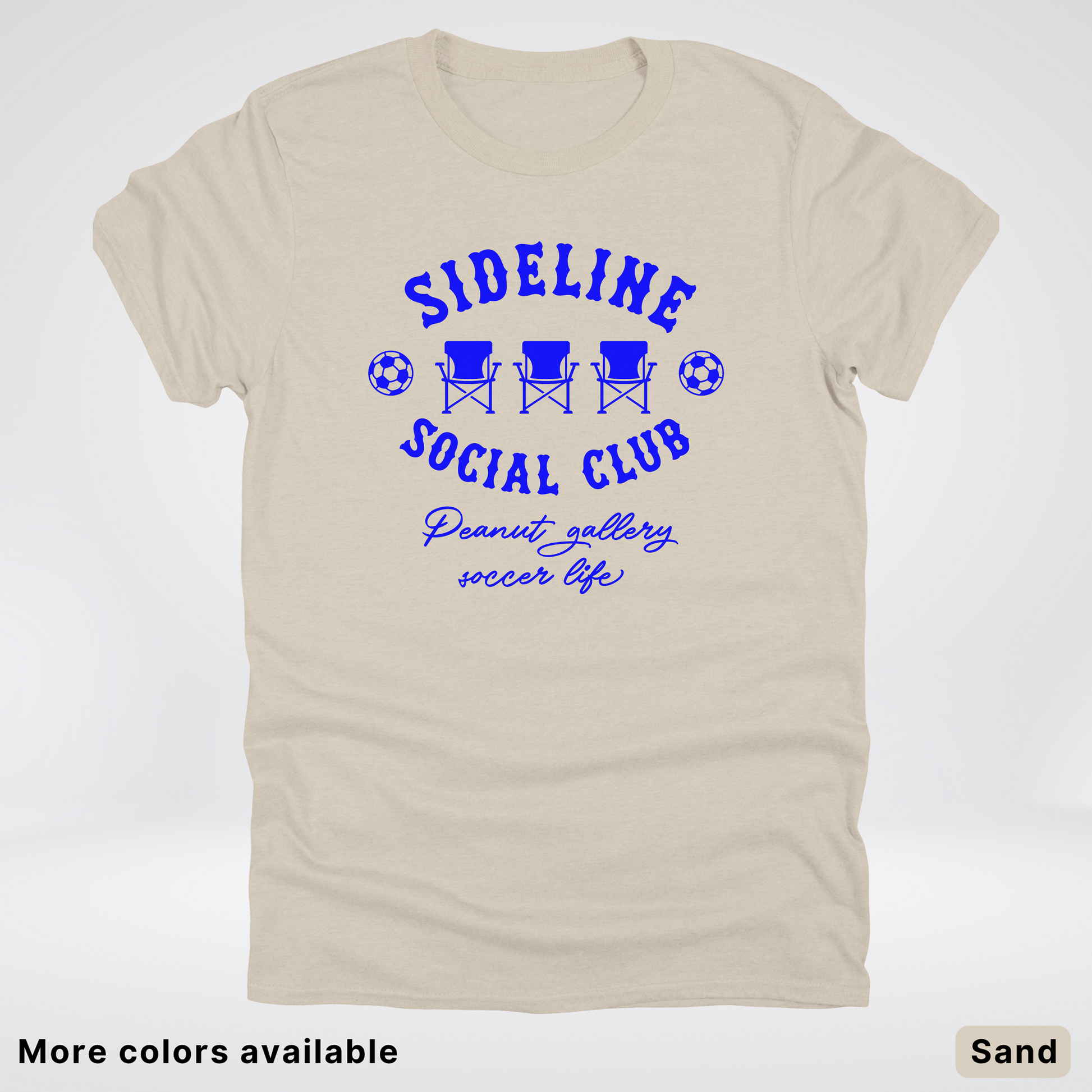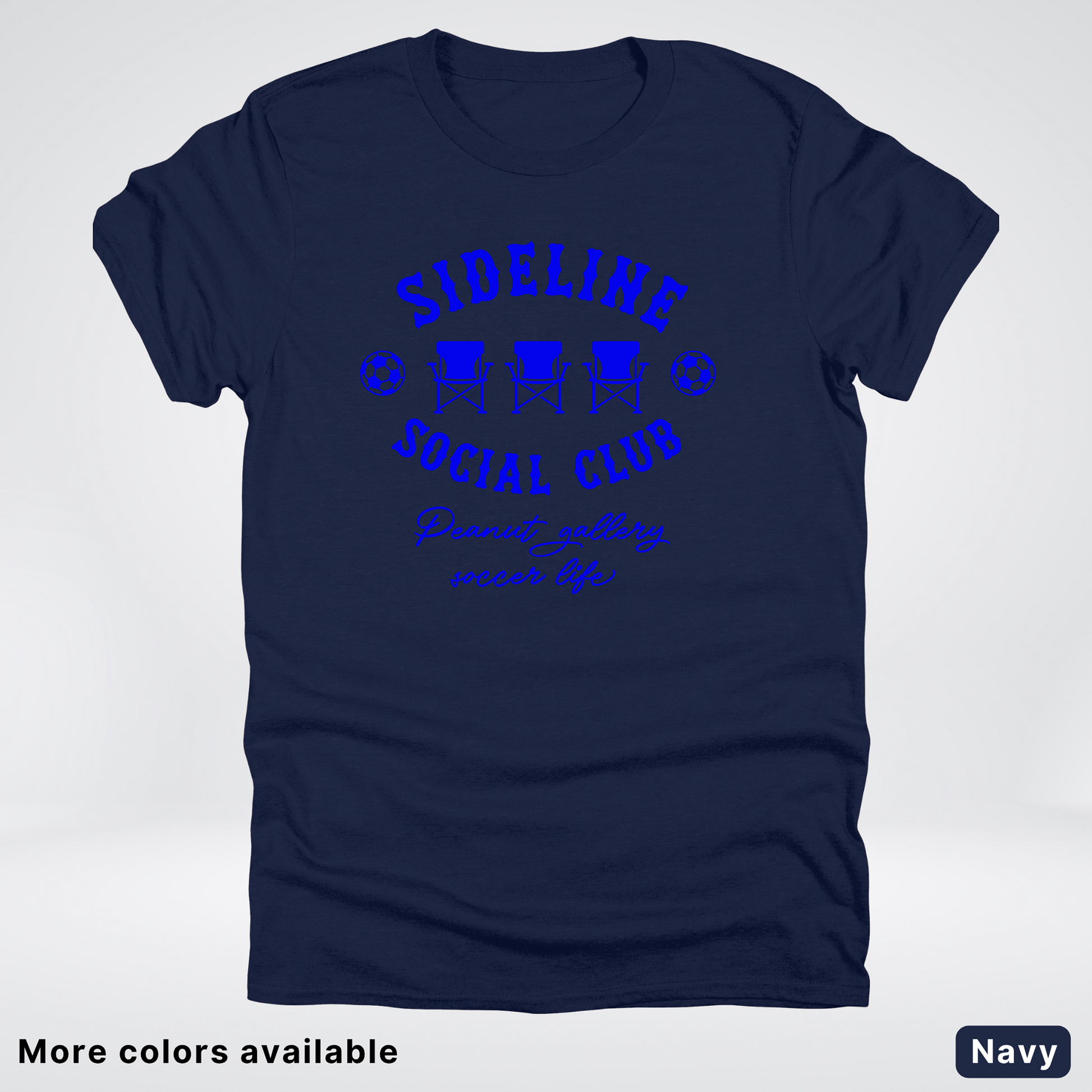 Sideline Social Club Peanut Gallery Soccer Life – Blue Design - T-Shirt