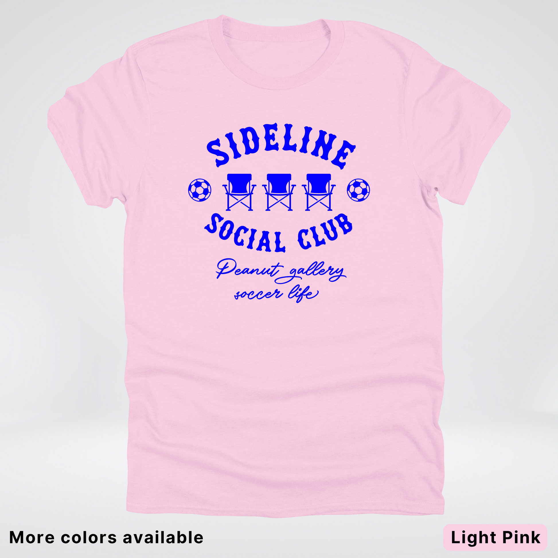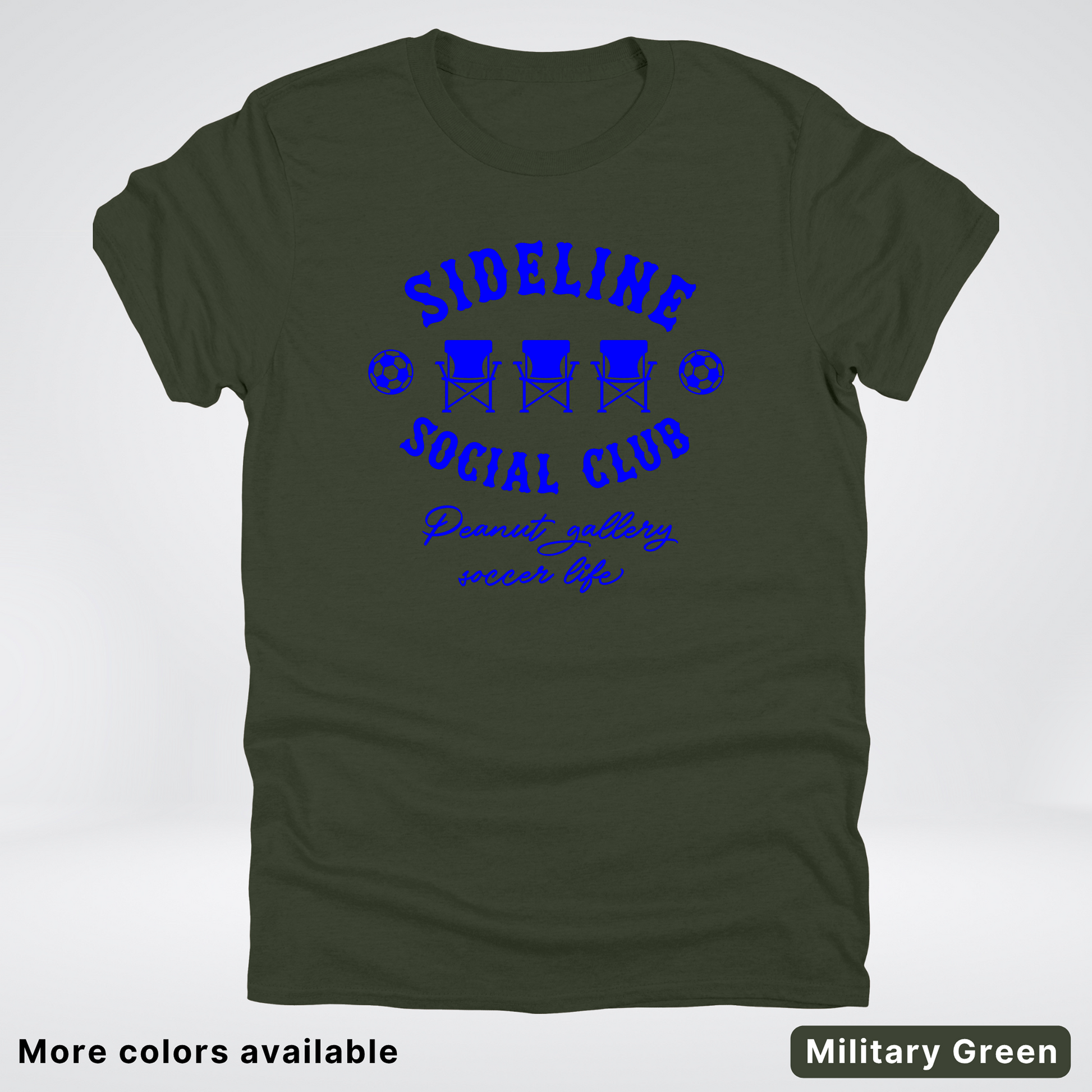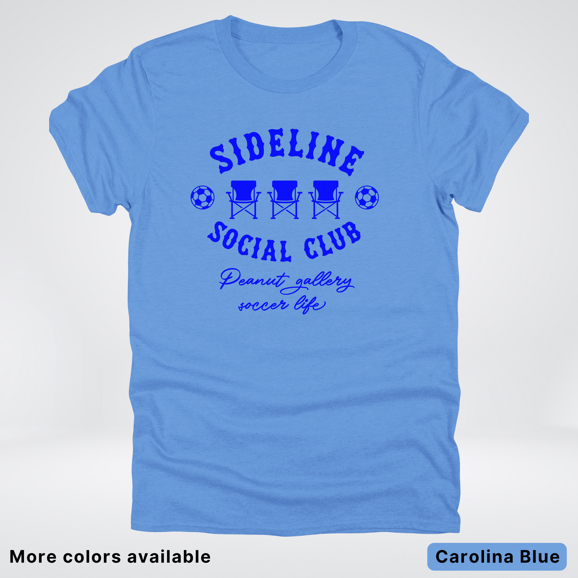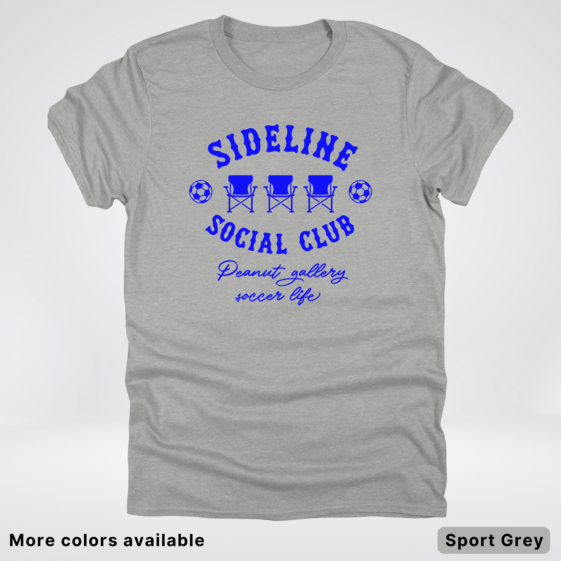Sideline Social Club Peanut Gallery Soccer Life – Blue Design - T-Shirt