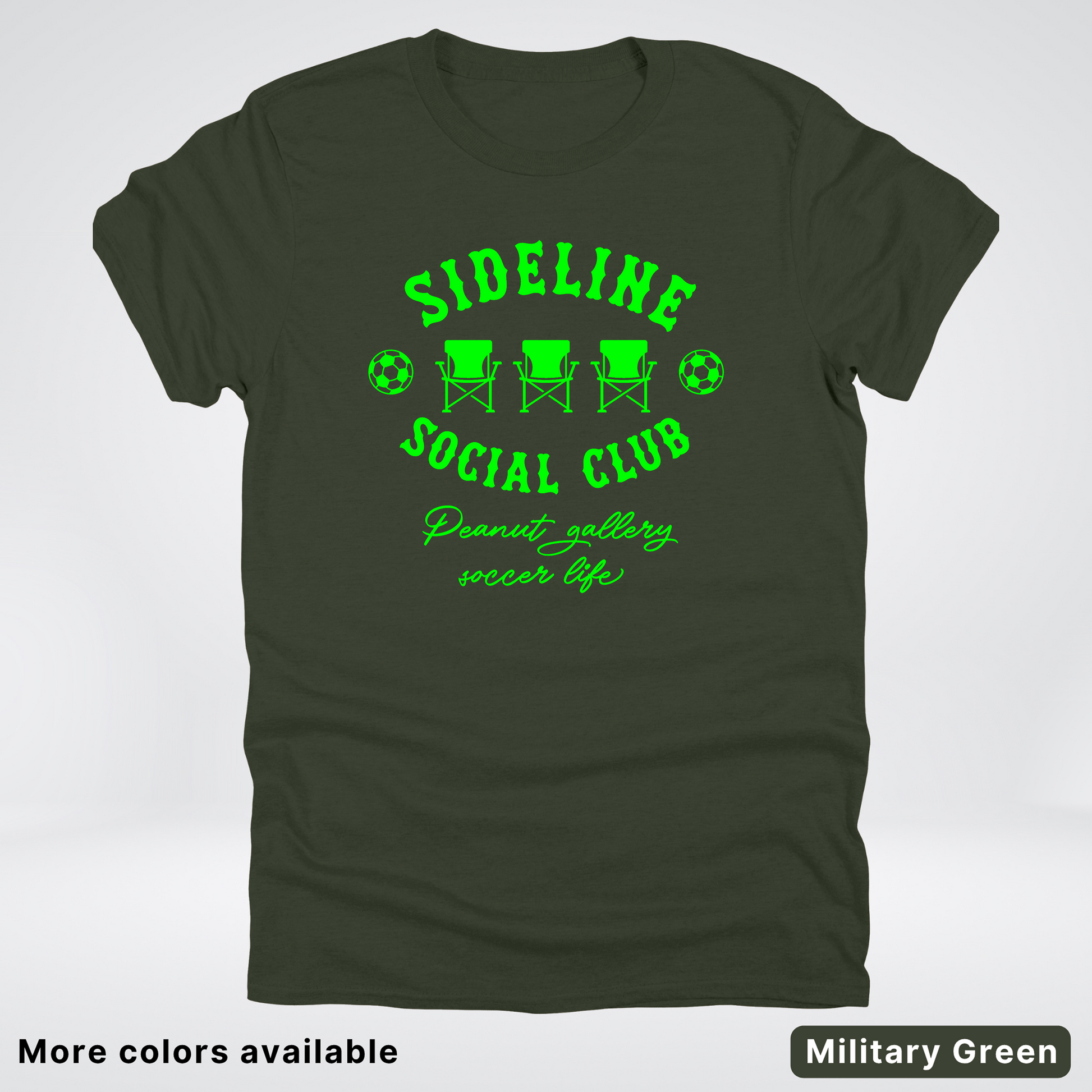 Sideline Social Club Peanut Gallery Soccer Life – Green Design - T-Shirt