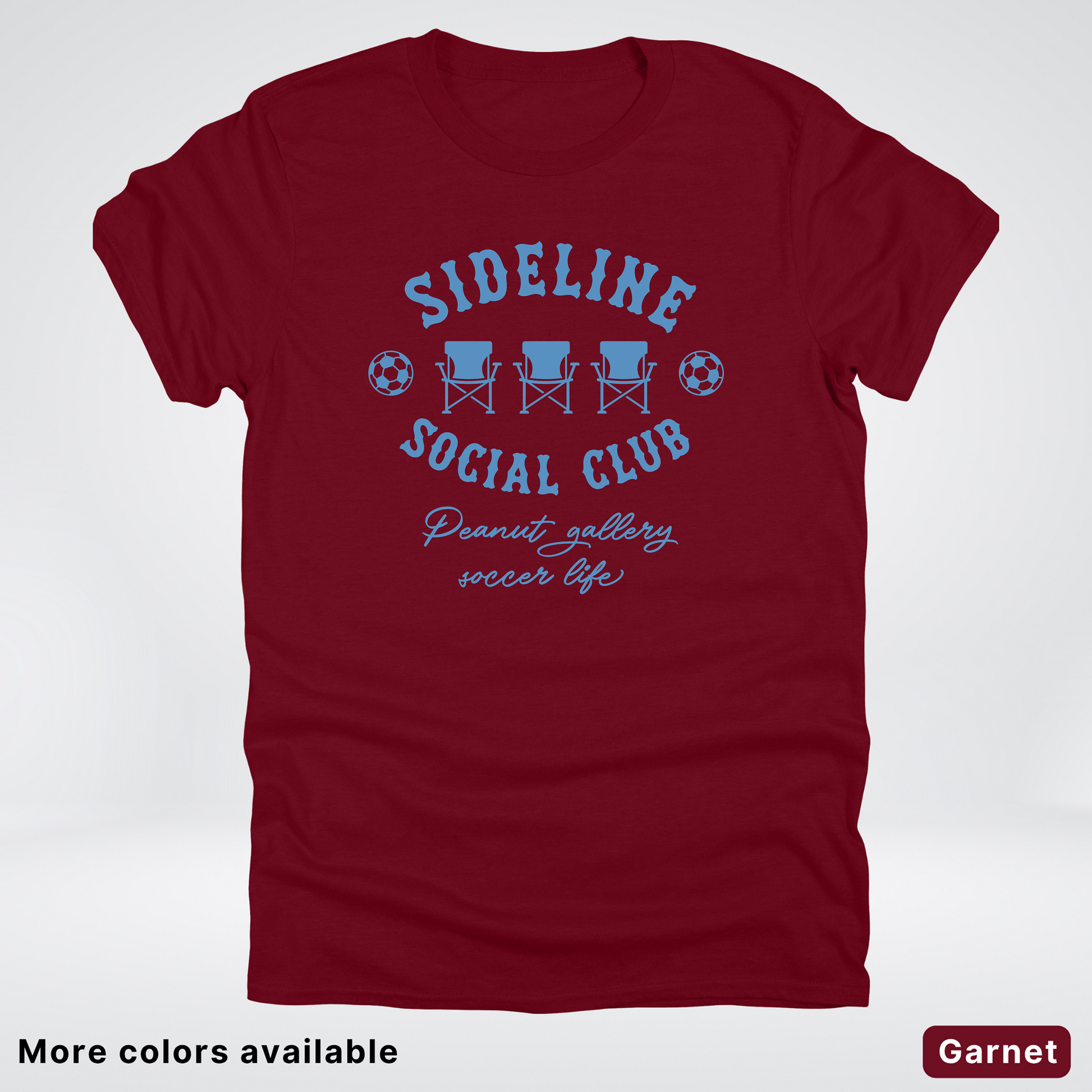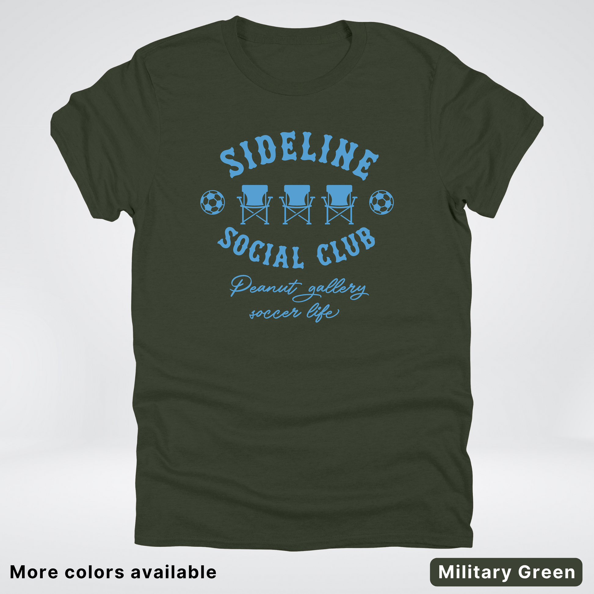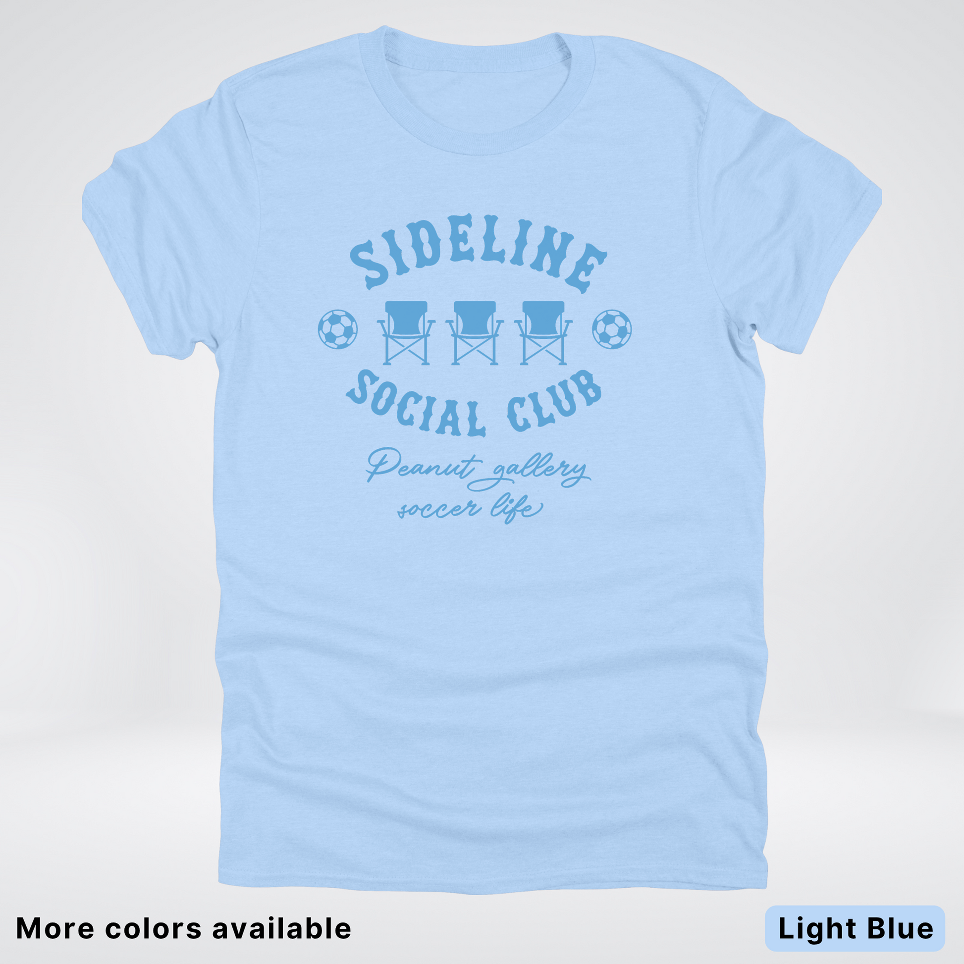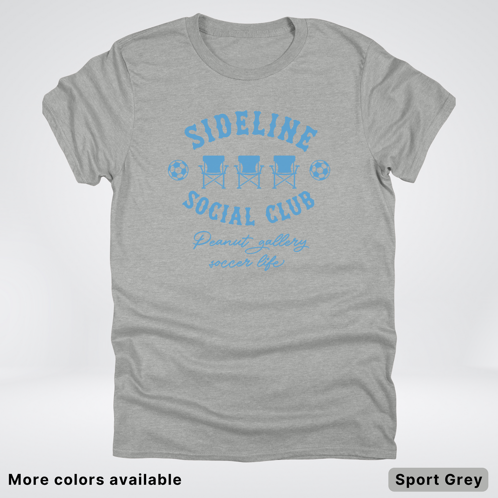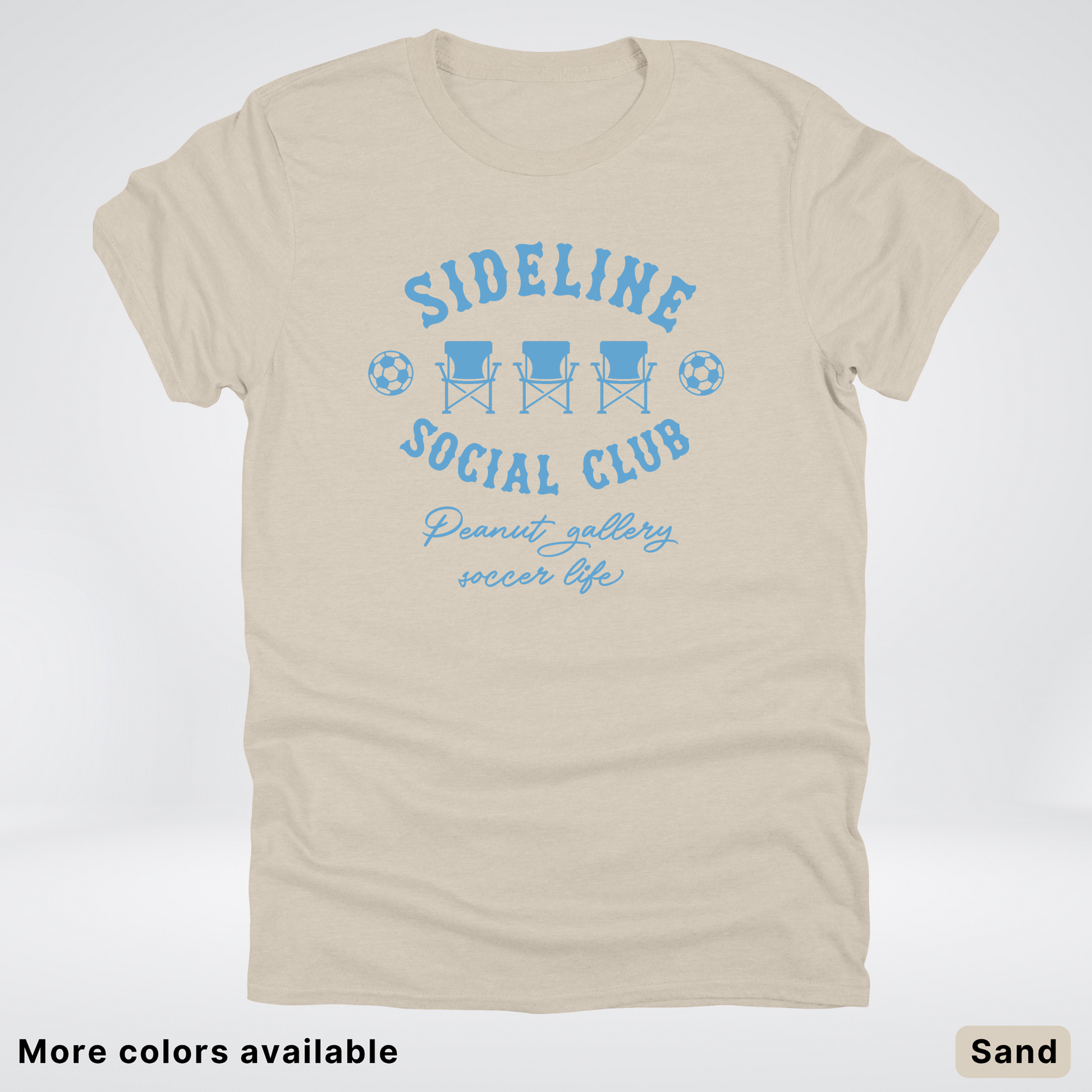 Sideline Social Club Peanut Gallery Soccer Life – Light Blue Design - T-Shirt