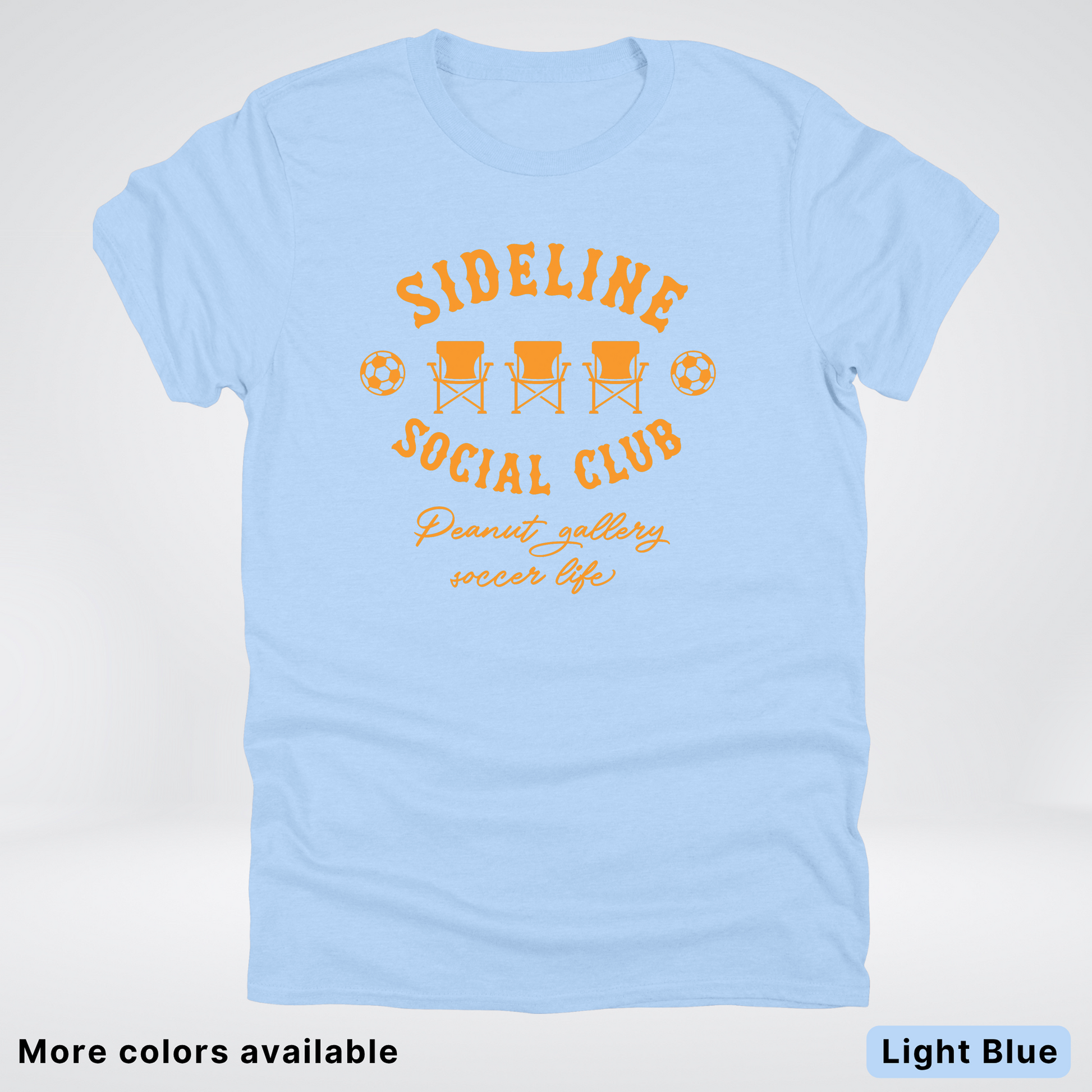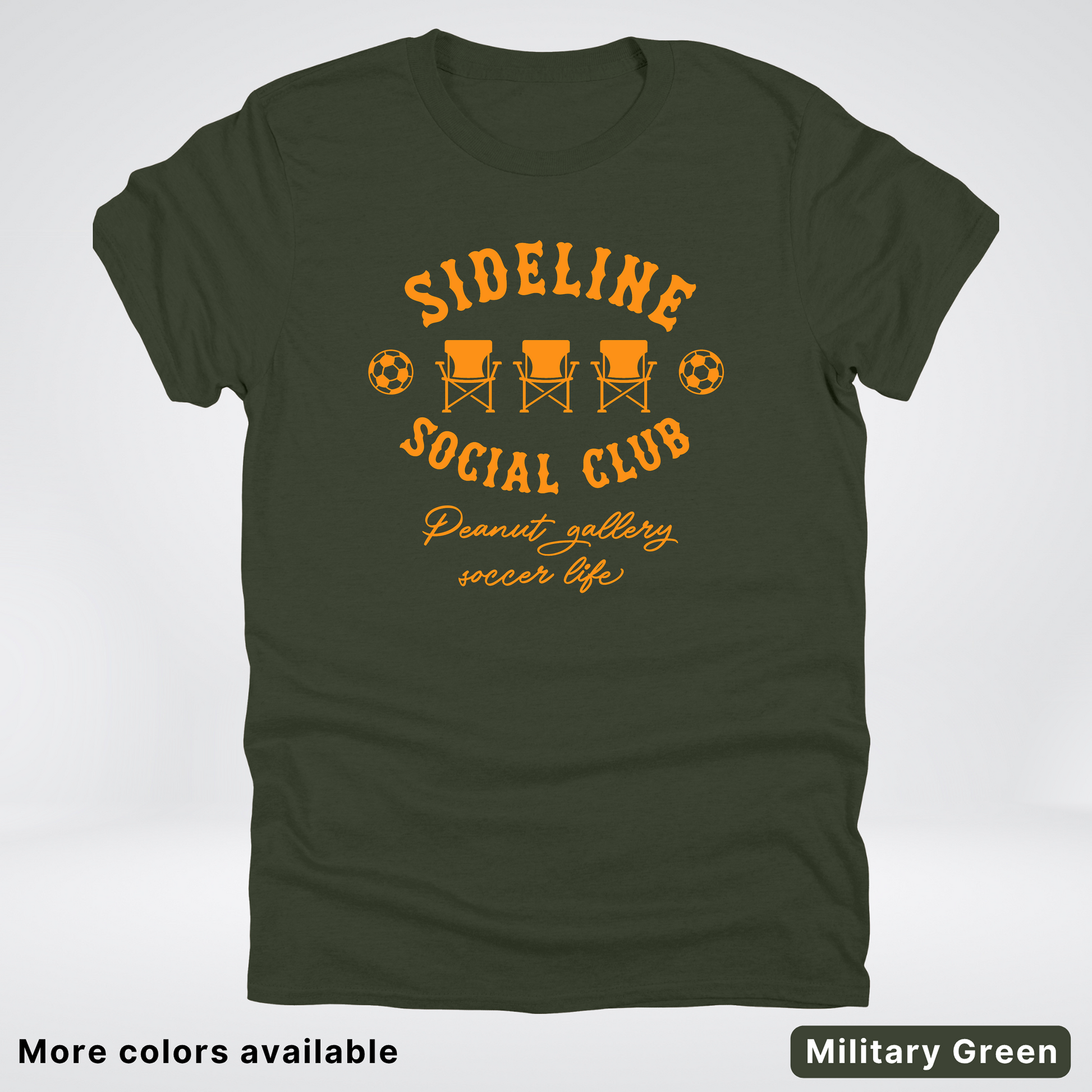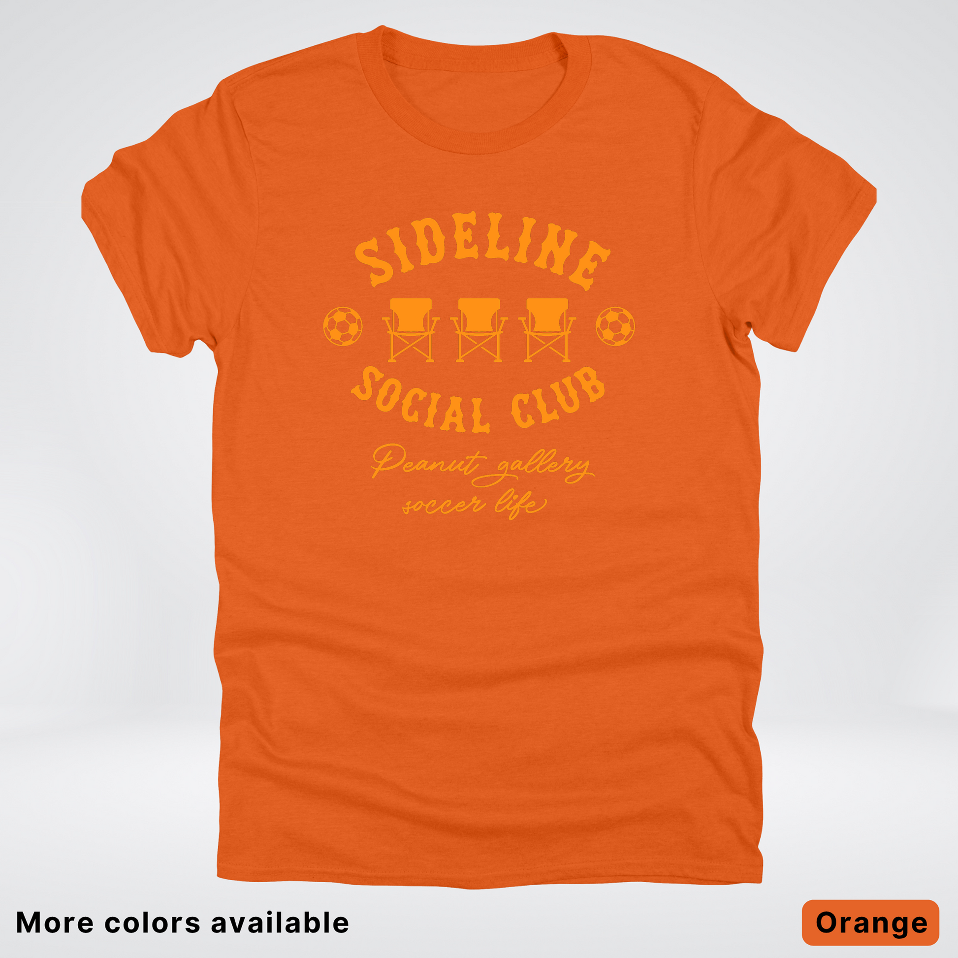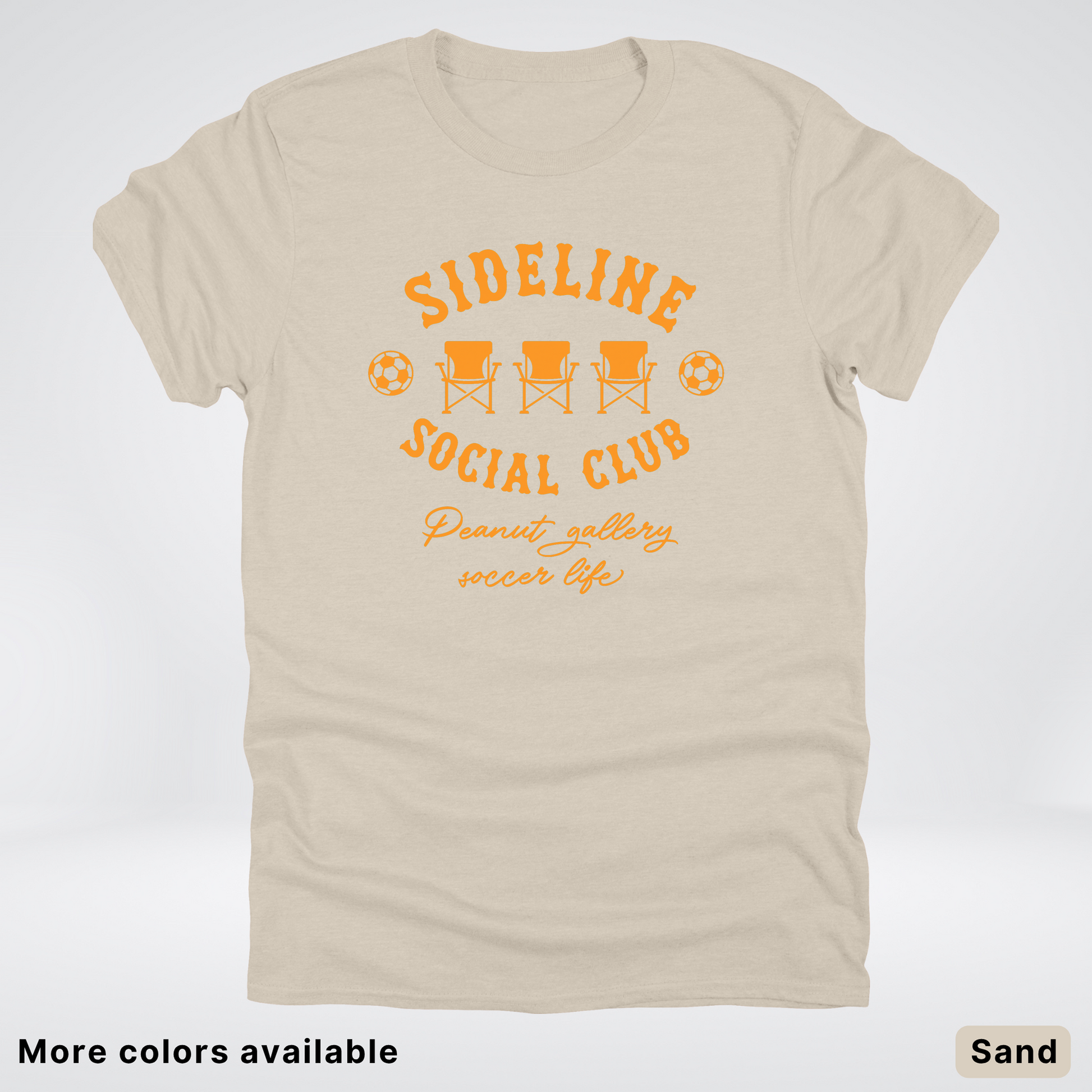 Sideline Social Club Peanut Gallery Soccer Life – Orange Design - T-Shirt
