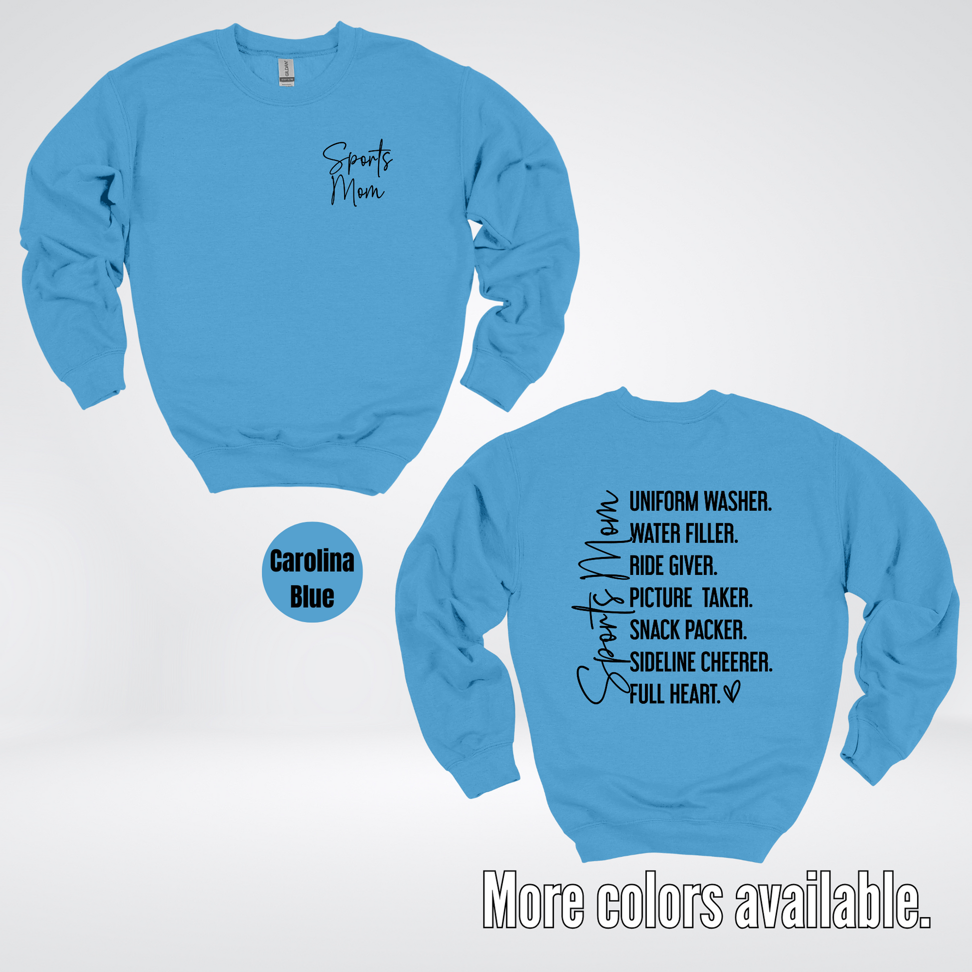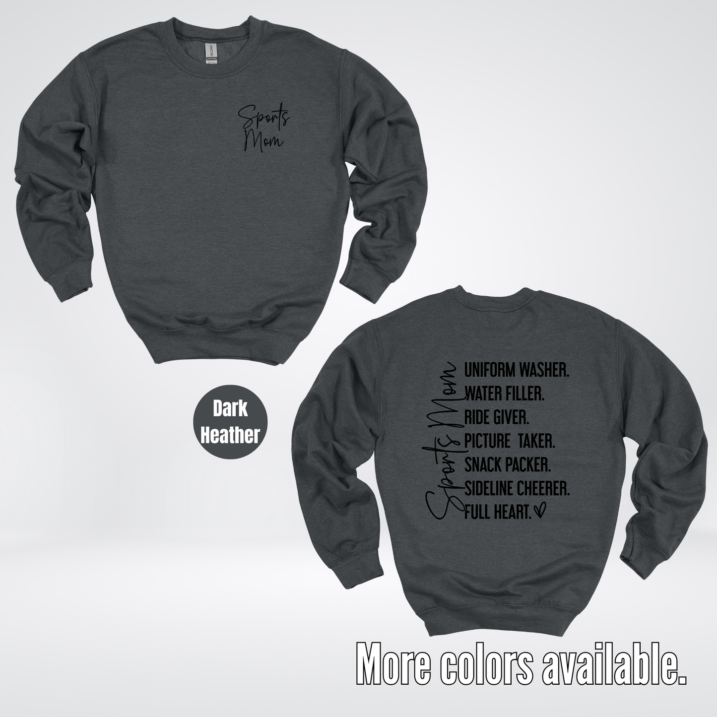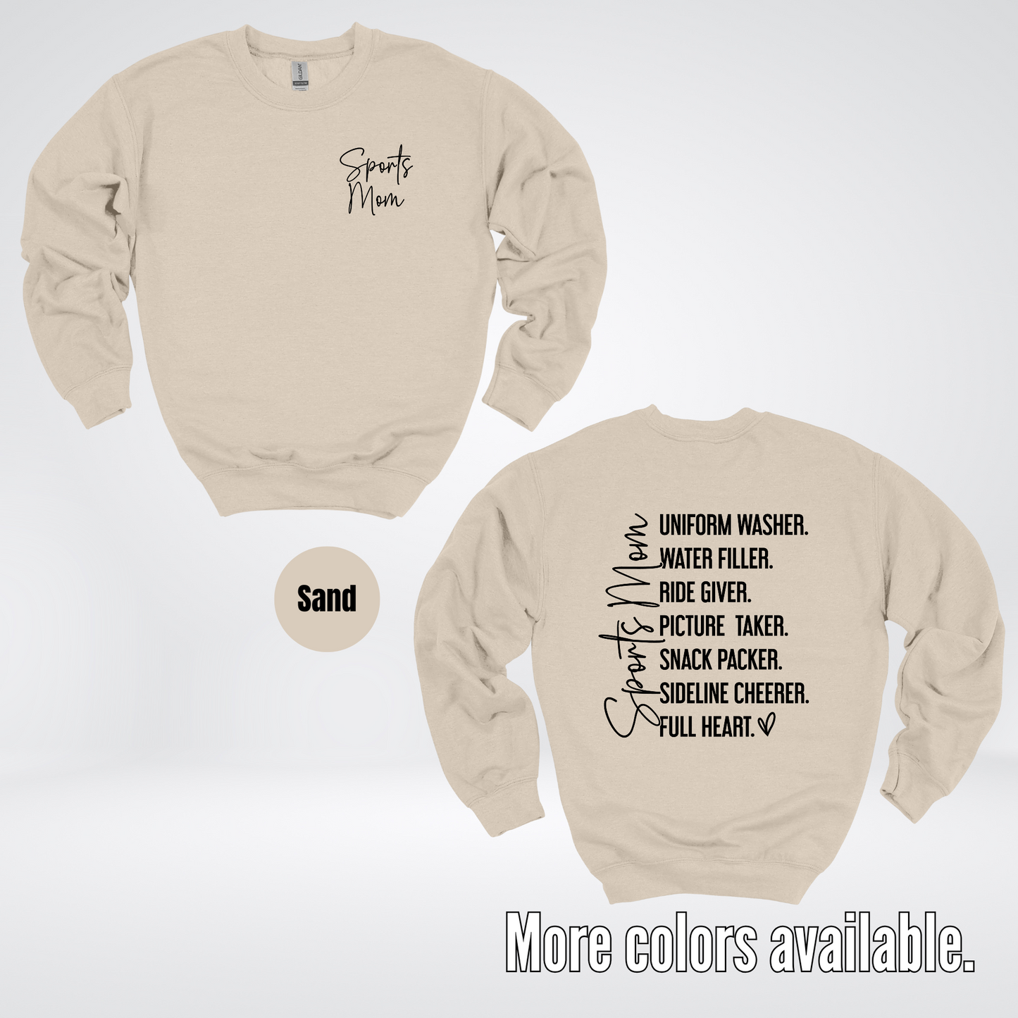 Get ready to be the ultimate sideline cheerer in our Sports Mom Uniform Washer sweatshirt! With a sleek black design and comfortable crewneck fit, you'll be able to cheer on your favorite player while staying warm and stylish. No need to worry about dirty uniforms, this sweatshirt has got you covered. (Don't worry, we won't tell anyone if you accidentally spill your game day snack on it!)