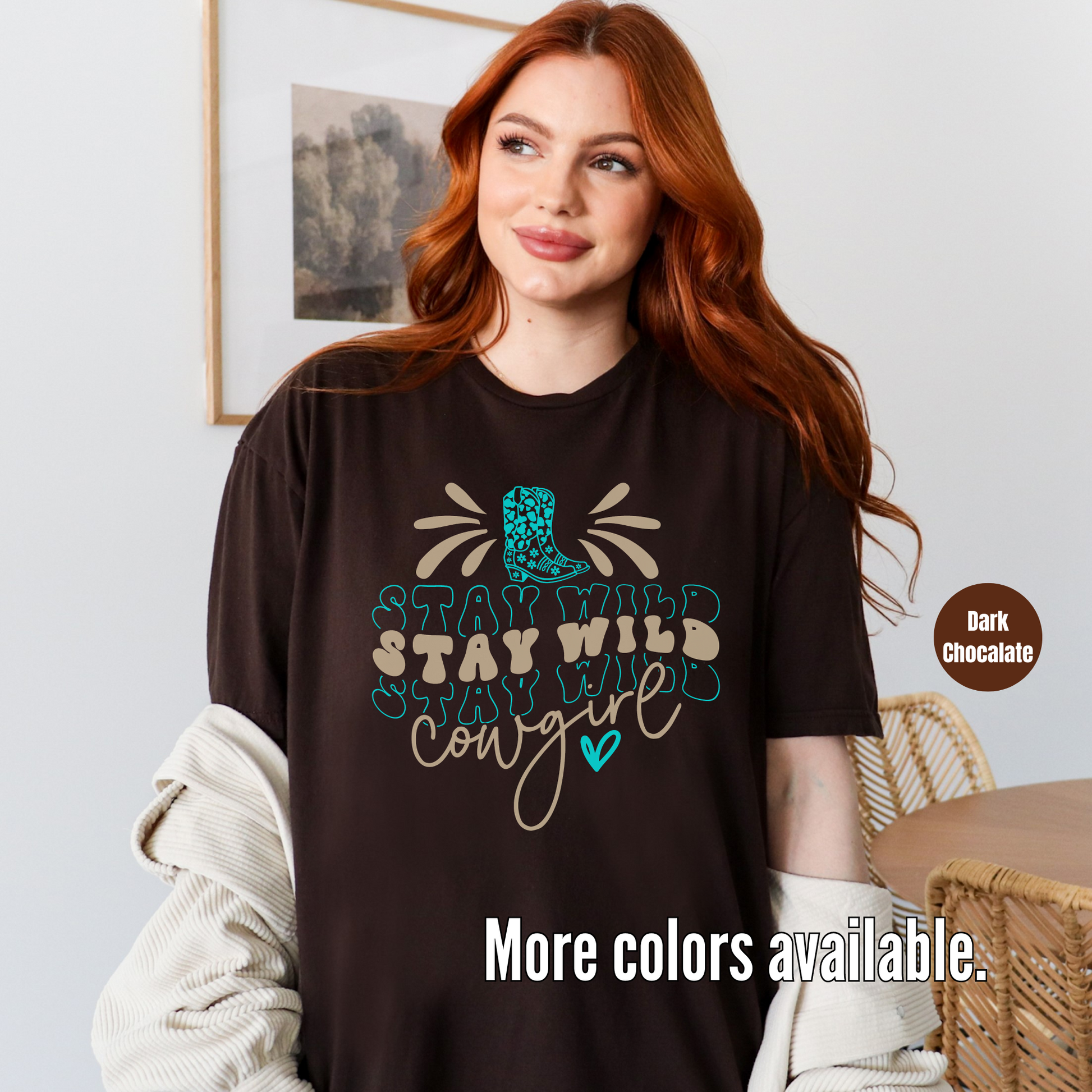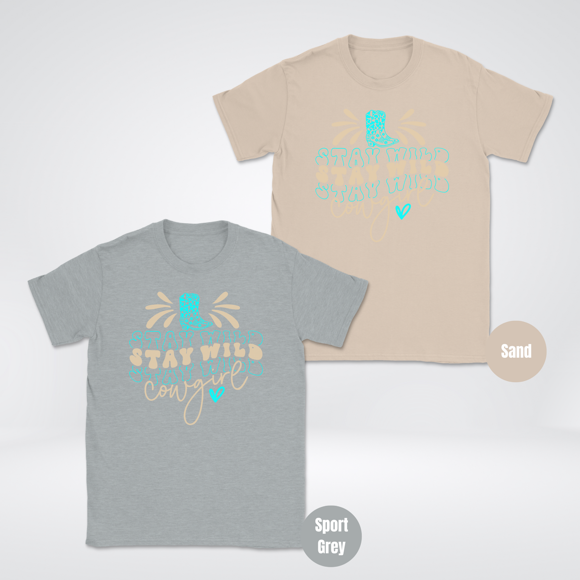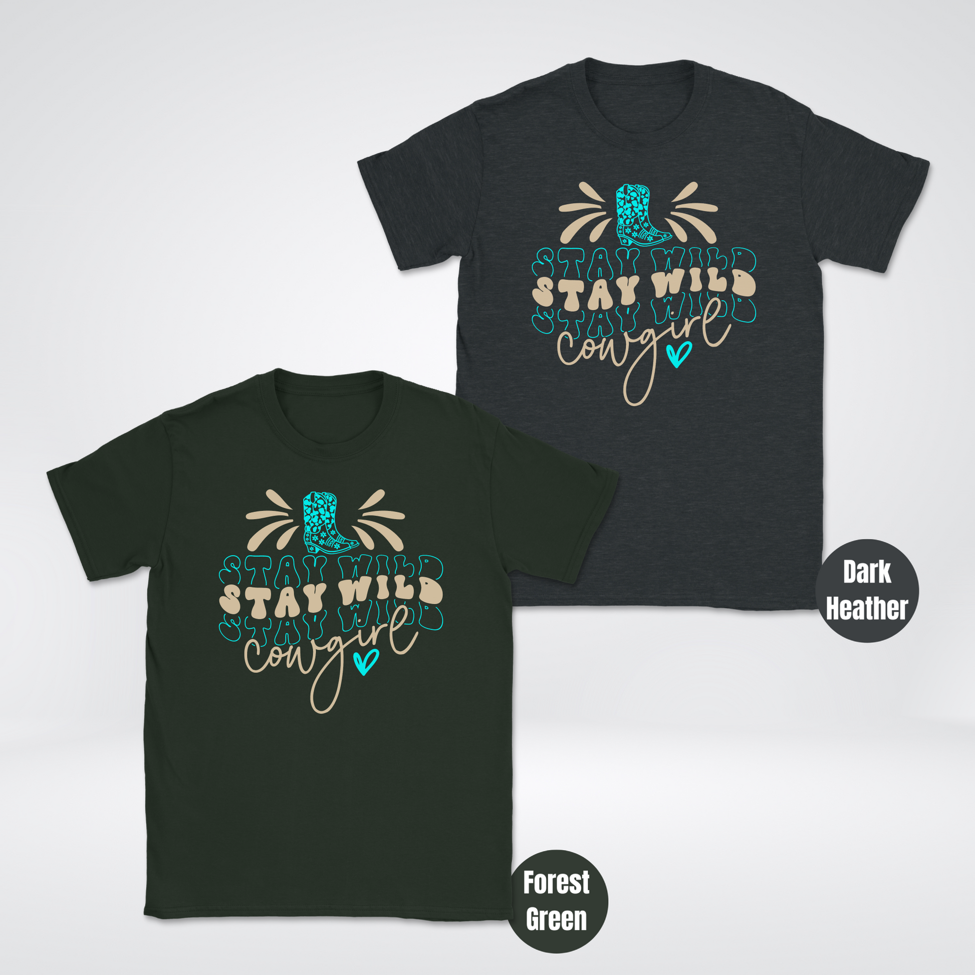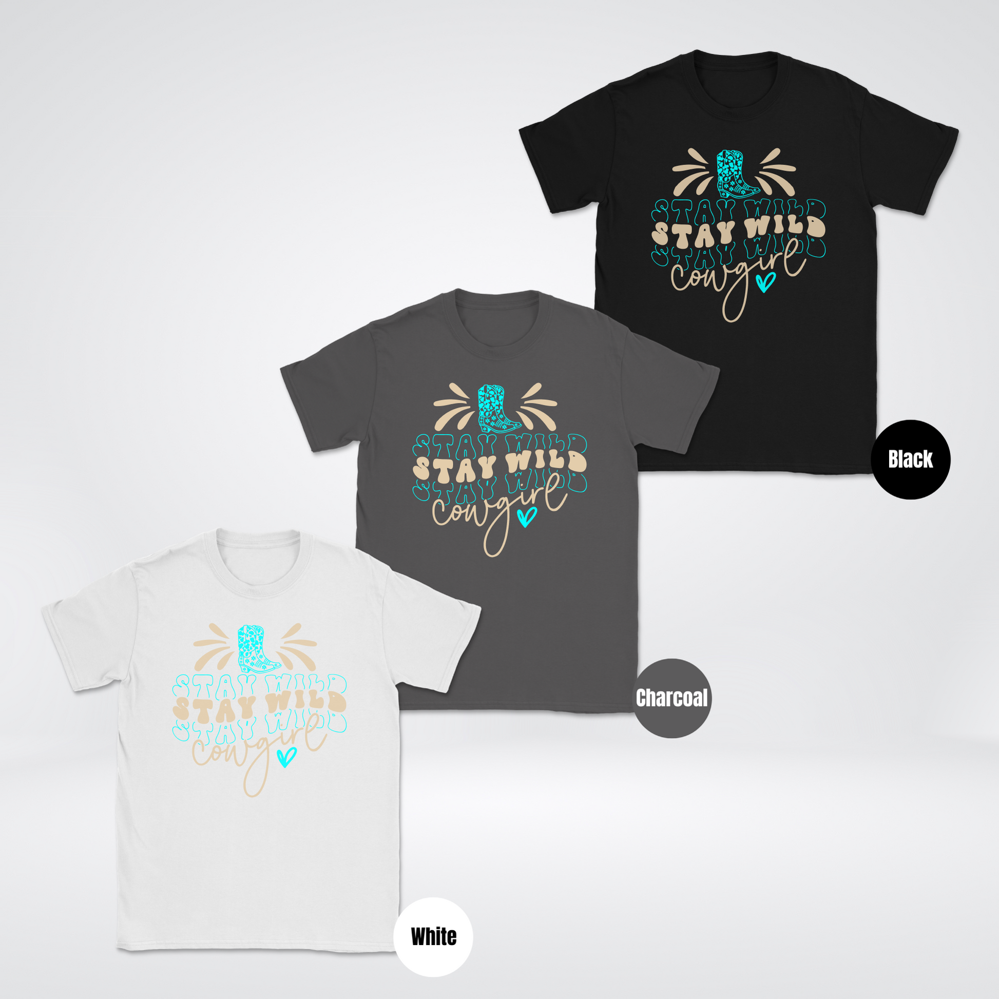 Embrace your inner cowgirl with this Stay Wild T-Shirt. Made with soft fabric, this unisex shirt is perfect for any adventure. Stay wild and free with this fun and comfortable tee. (Yeehaw!)