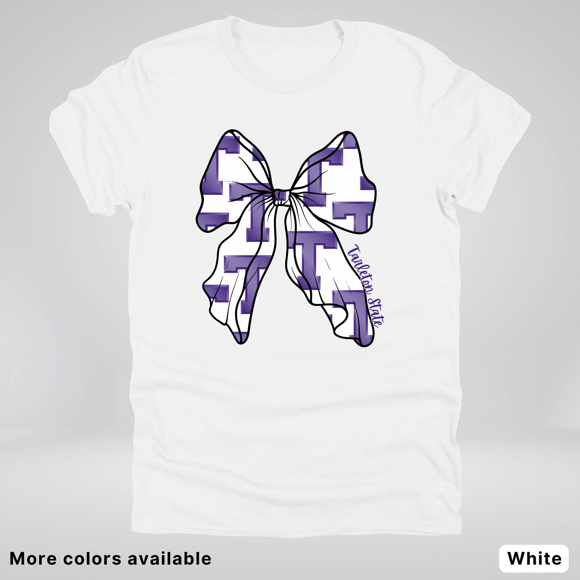 Cheer on Tarleton State with the playful Coquette Bow Football T-Shirt! Featuring a cute bow detail alongside your favorite team’s spirit, this tee makes game day extra fun and stylish. Comfortable and spirited, it’s perfect for showing off your love for Tarleton football with a flirty touch.