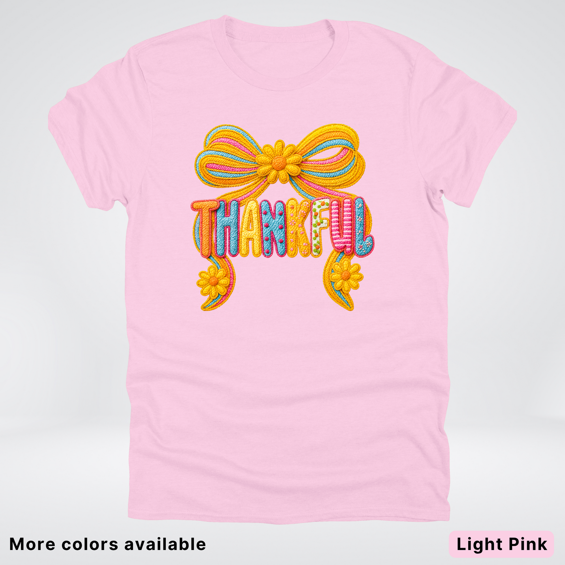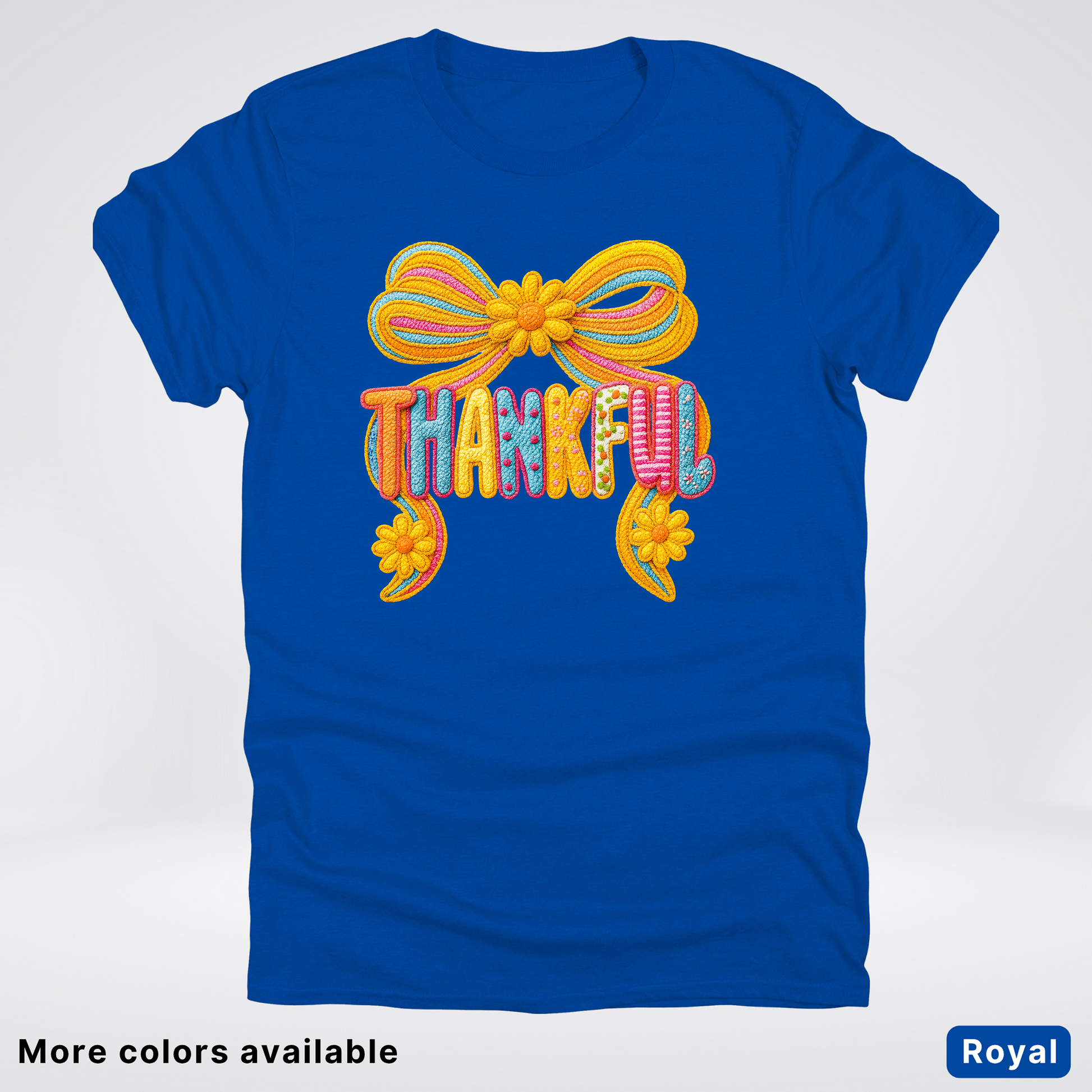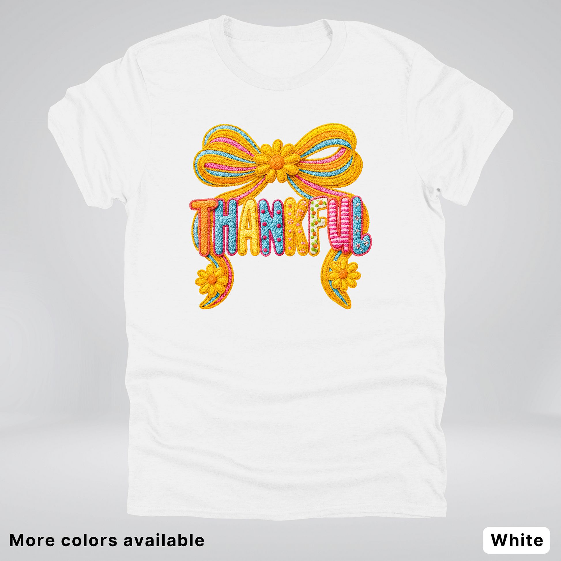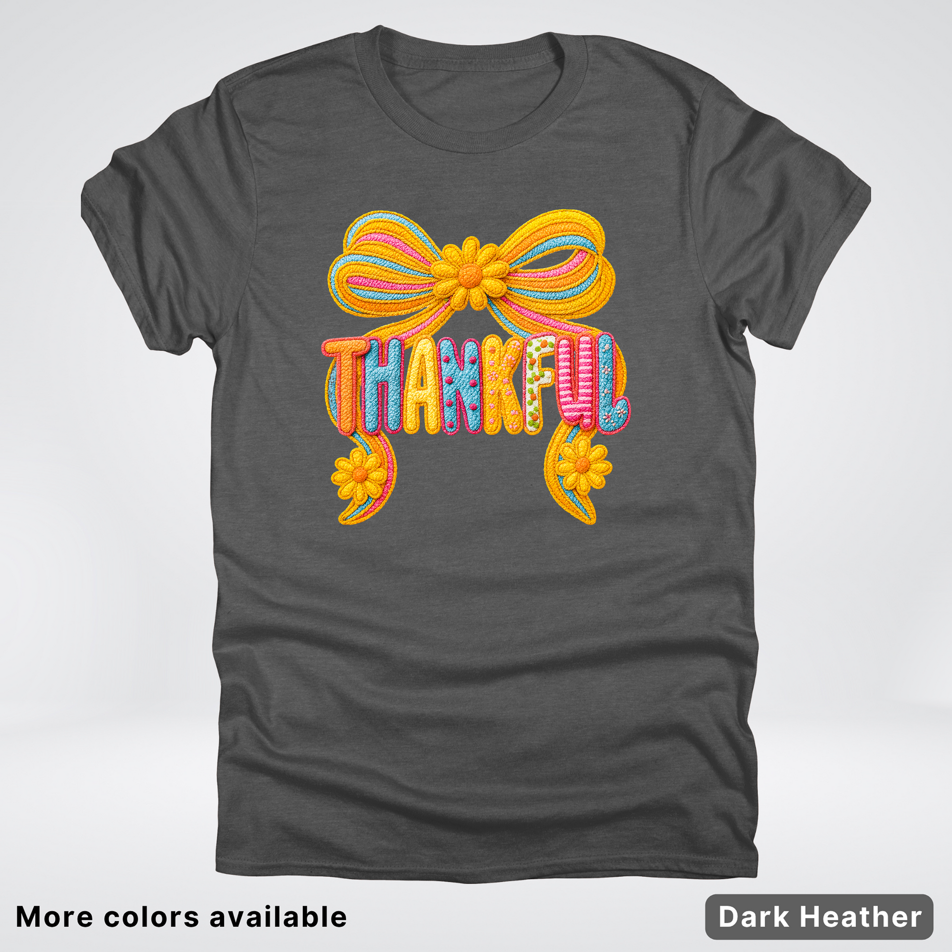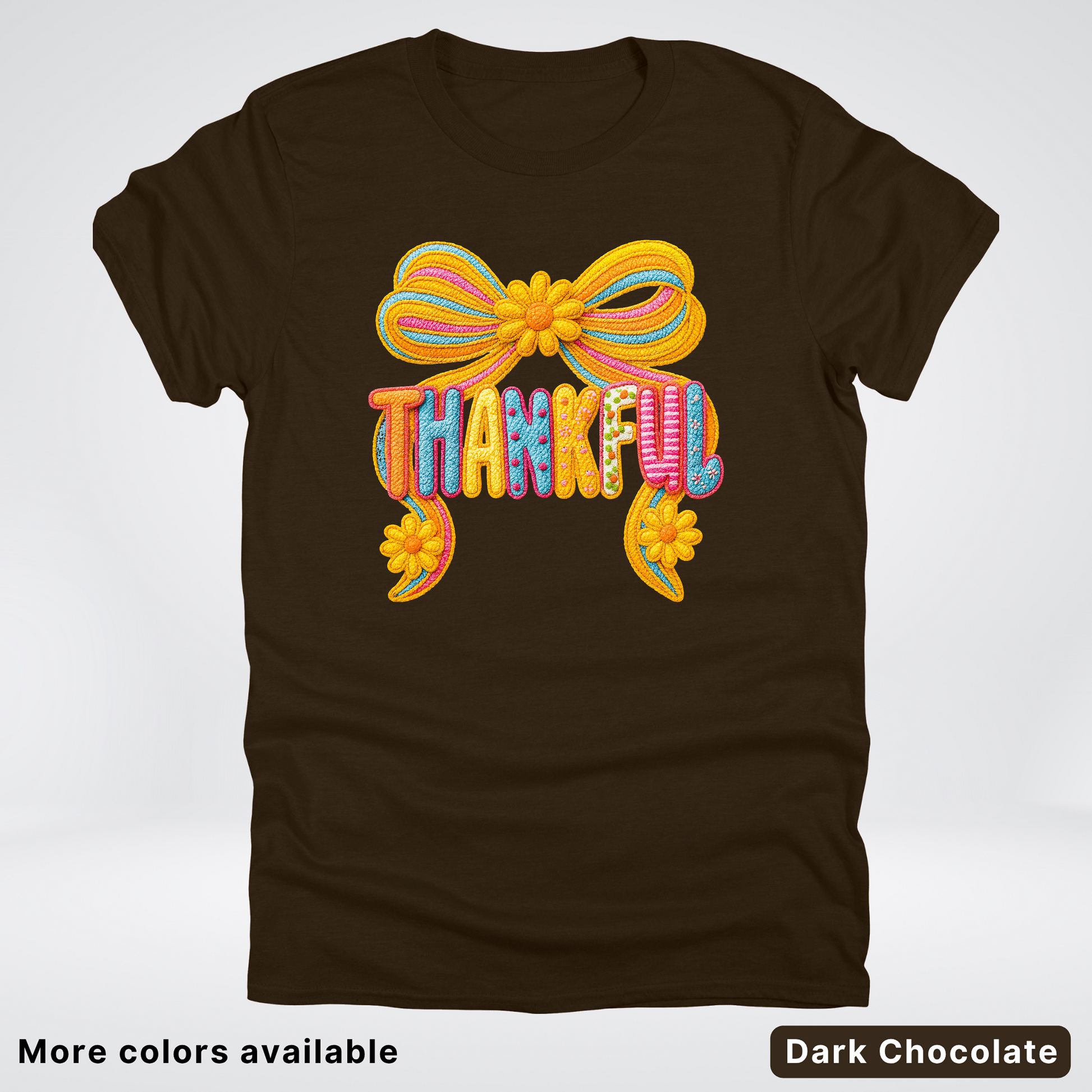 Celebrate the season in cozy comfort with this Thankful Crochet Style Fall T-Shirt! Featuring a charming crochet-inspired design that captures autumn's warmth and texture, this tee brings a handmade touch to your casual wardrobe. Perfect for layering on crisp fall days or wearing solo when the weather's mild, it's an easy way to show your gratitude for the little things. Soft, wearable, and undeniably cute—your new favorite seasonal staple awaits.