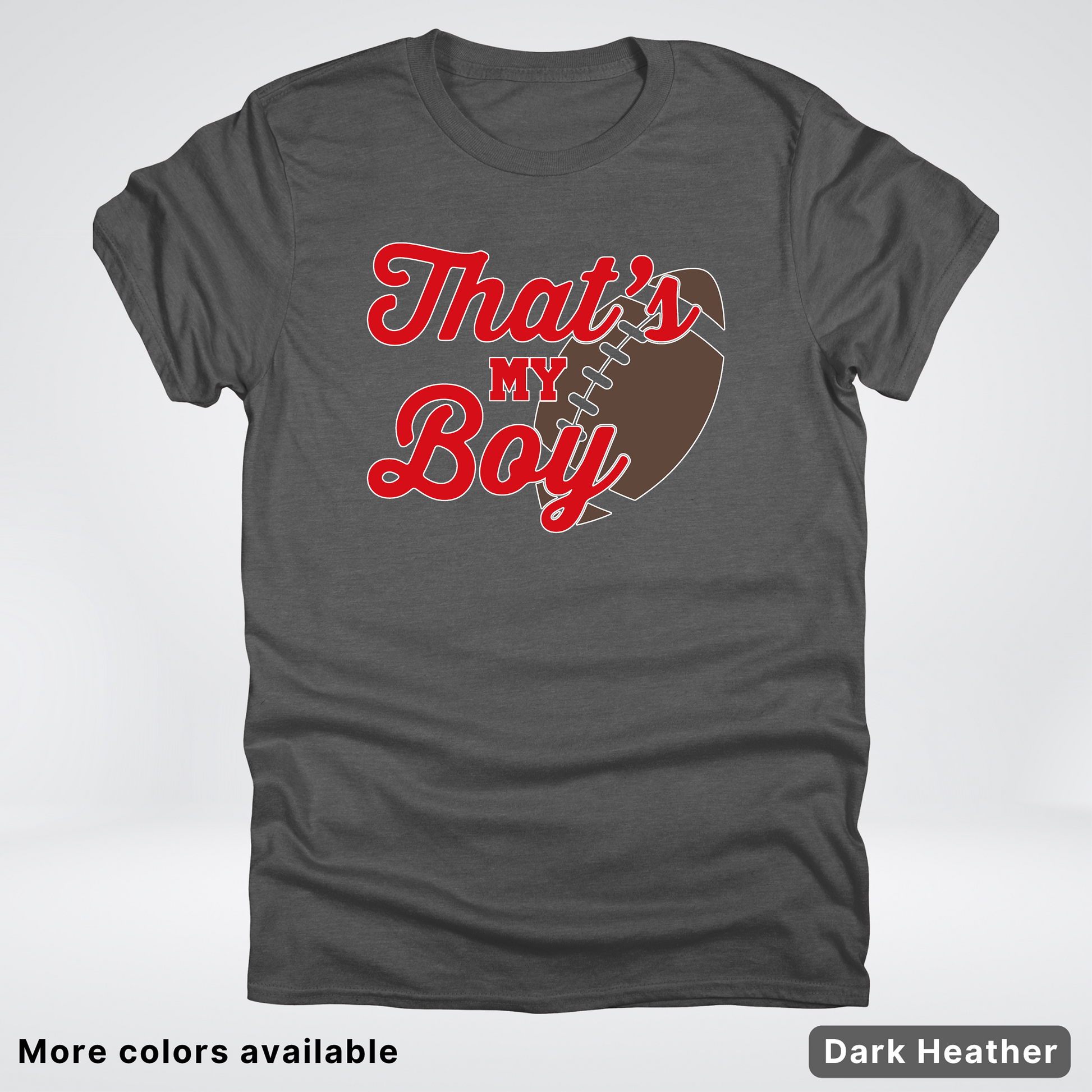 Cheer on your favorite player with pride in this bold red football tee! Perfect for game day or showing your support year-round, this playful design celebrates the star athlete in your life. Comfortable, casual, and conversation-starting—because sometimes you just gotta let everyone know whose side you're on. Whether you're in the stands or cheering from home, wear your pride loud and proud.