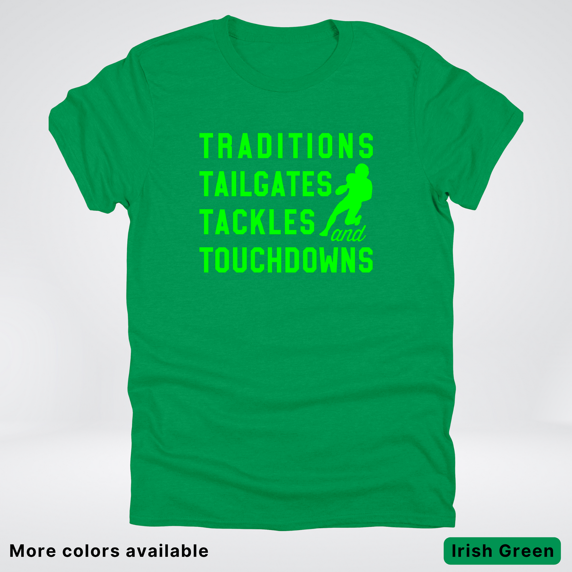 Traditions Tailgates Tackles and Touchdowns – Green Design - Football T-Shirt