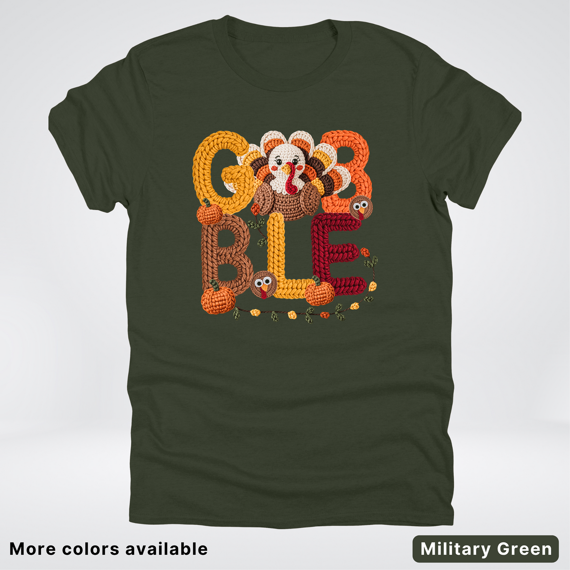 Turkey Gobble Pumpkin Fall Crochet - T-Shirts