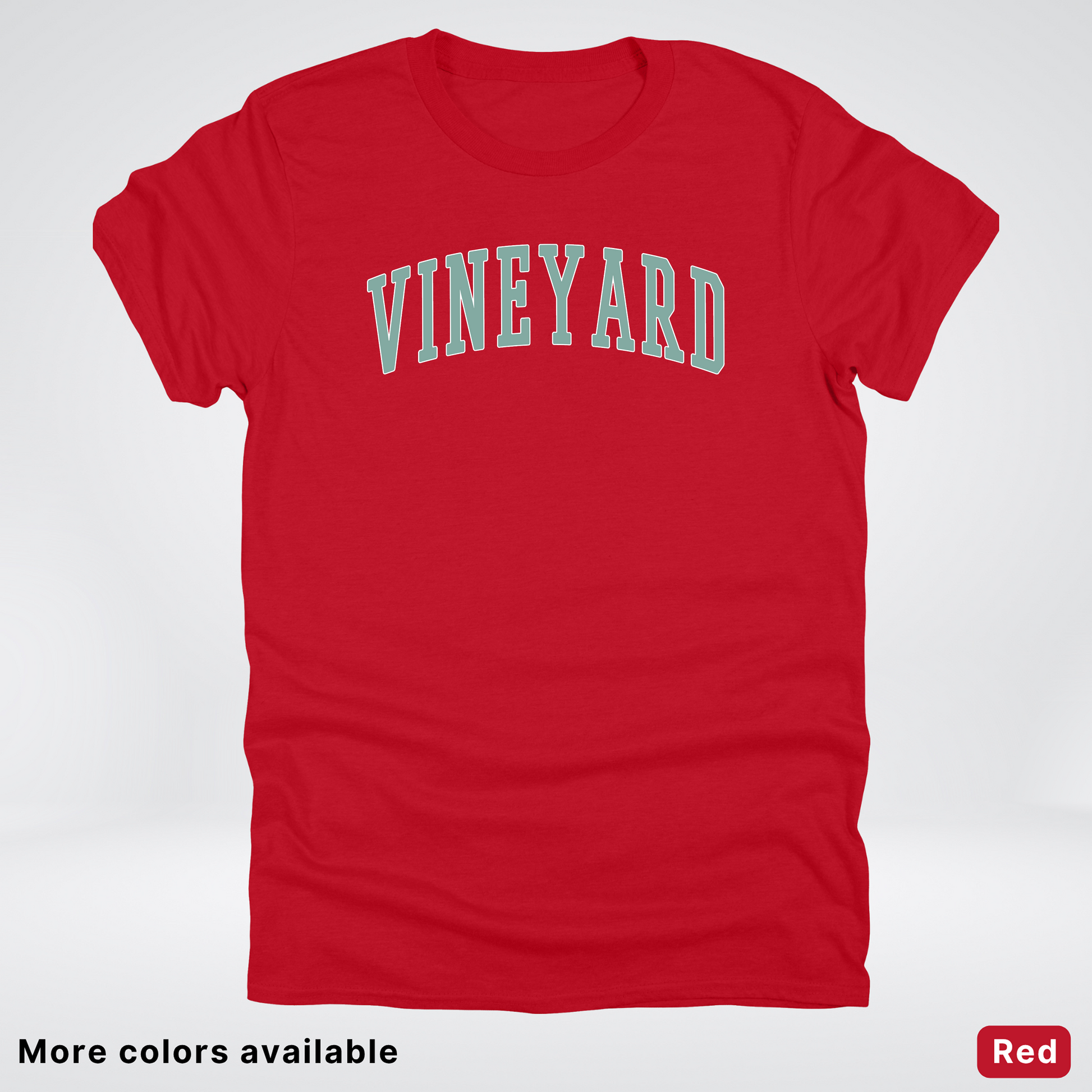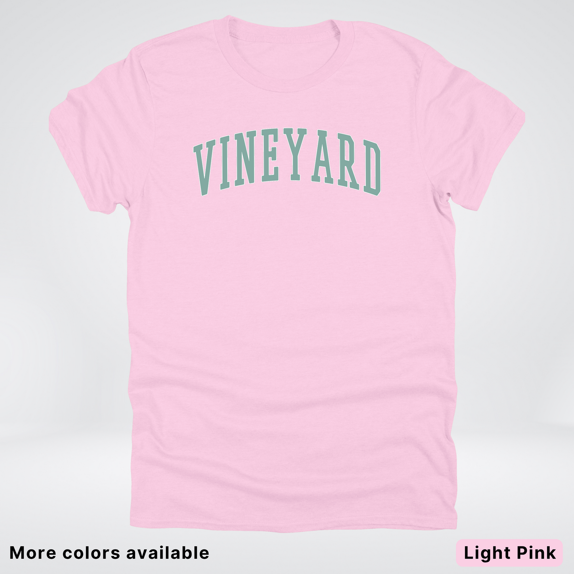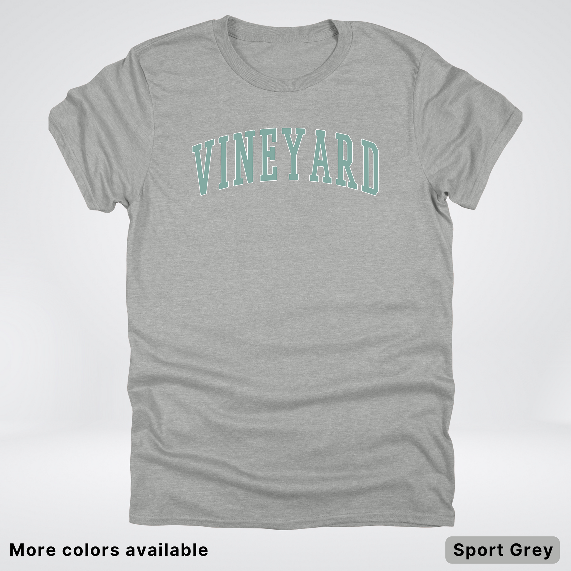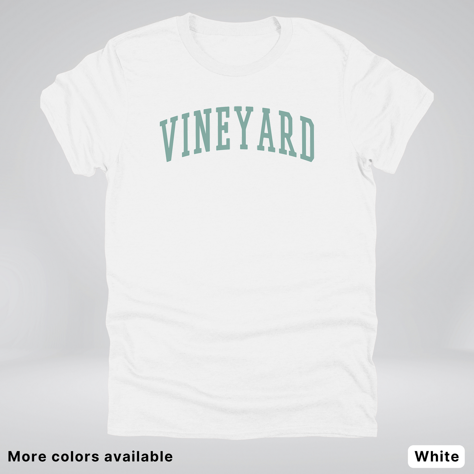 Celebrate your love for the Vineyard with this fun Destination T-Shirt featuring a classic varsity font. Its playful design adds a sporty twist to your casual look, perfect for vineyard visits or everyday adventures. Soft and comfy, this tee lets you wear your destination pride with a wink and a smile wherever you go.