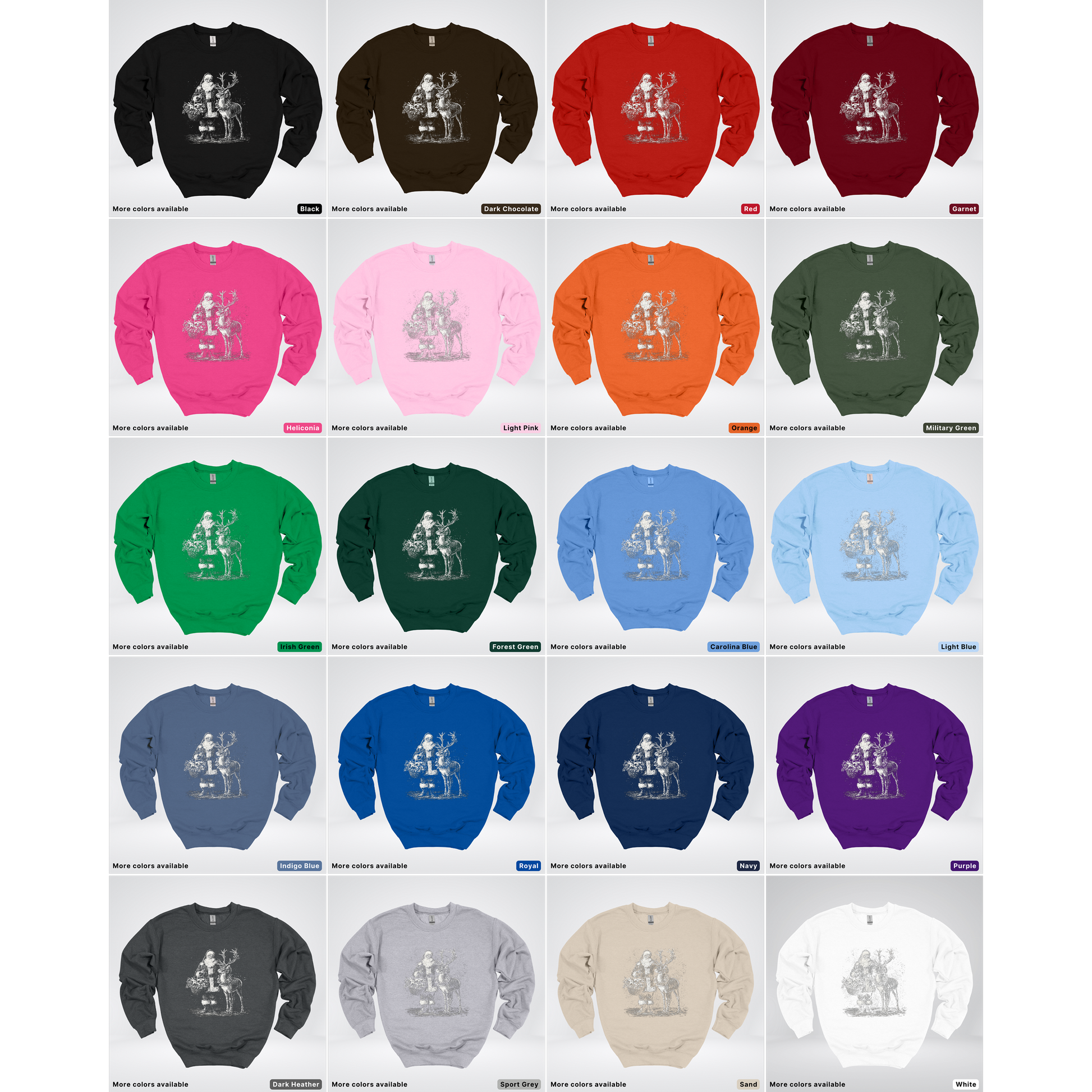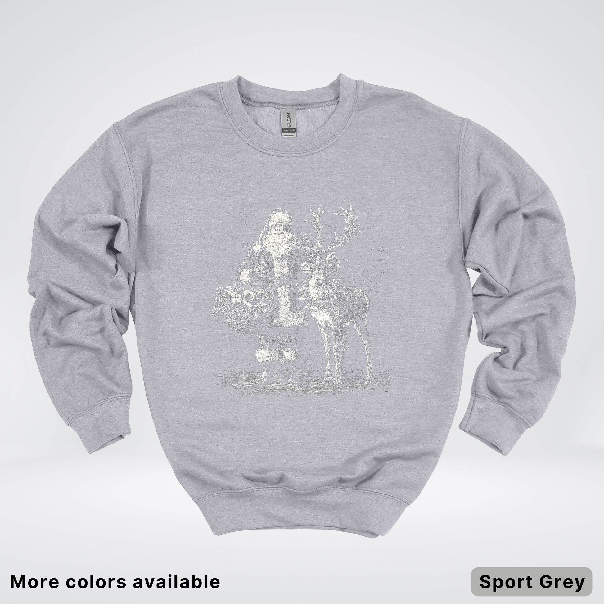 Embrace holiday nostalgia with this charming vintage-inspired crewneck sweatshirt featuring classic Santa and reindeer imagery. Perfect for festive gatherings, cozy nights in, or spreading seasonal cheer, this comfortable pullover combines retro aesthetics with modern comfort. The timeless design appeals to holiday enthusiasts of all ages, making it an ideal gift or wardrobe staple for the winter season. Soft, durable fabric ensures lasting wear through countless celebrations.