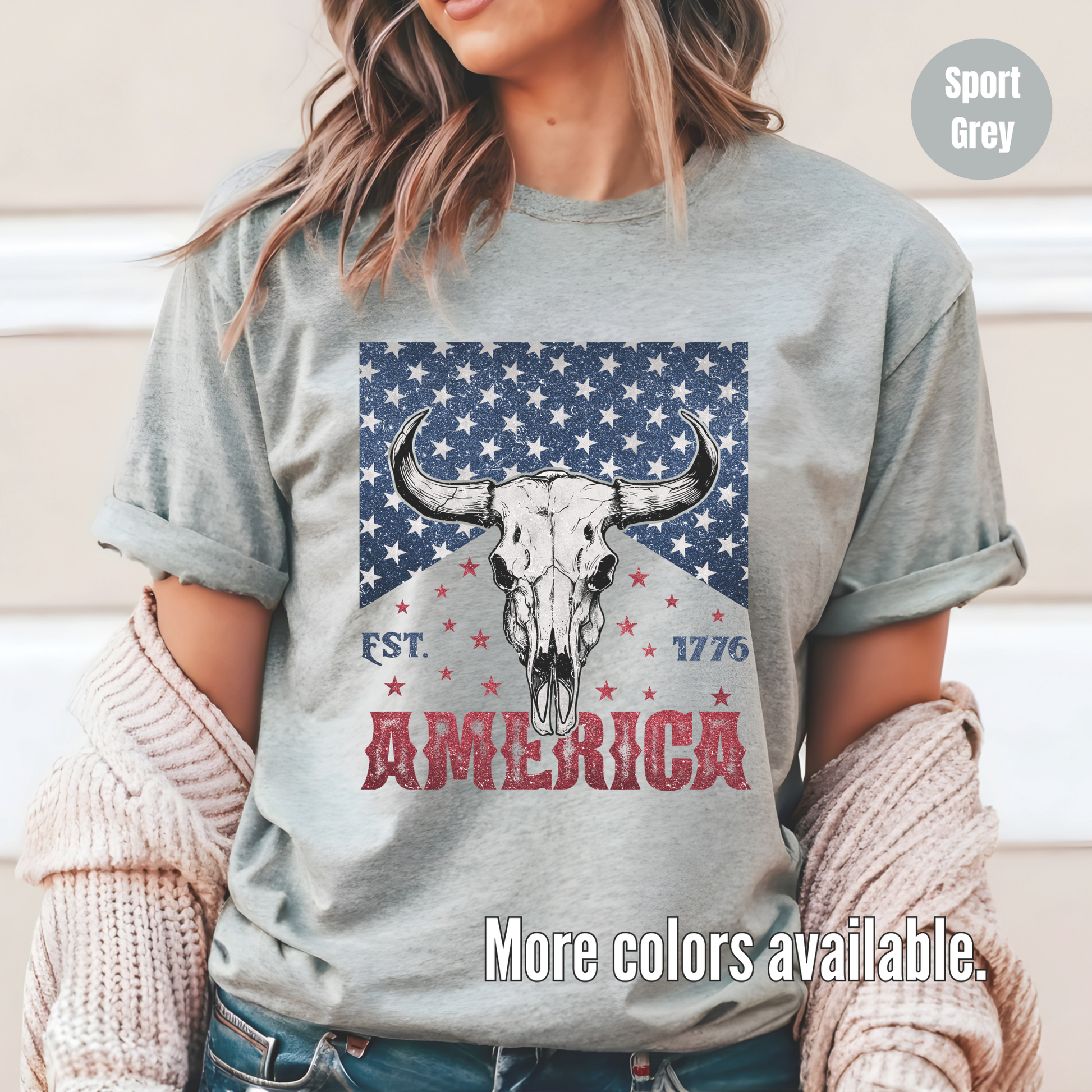 Celebrate 4th of July in style with our Western American Est 1776 Unisex Softstyle T-Shirt! Made with soft materials, this shirt is perfect for showing off your patriotic spirit. The unique design adds a fun western twist to your holiday outfit. Don't miss out - get yours now!